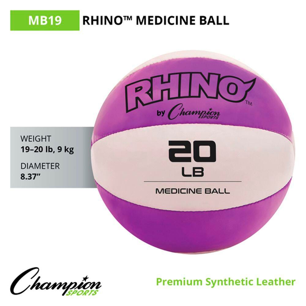 Champion Sports Rhino Leather Medicine Ball, 20 Pounds, Purple/White