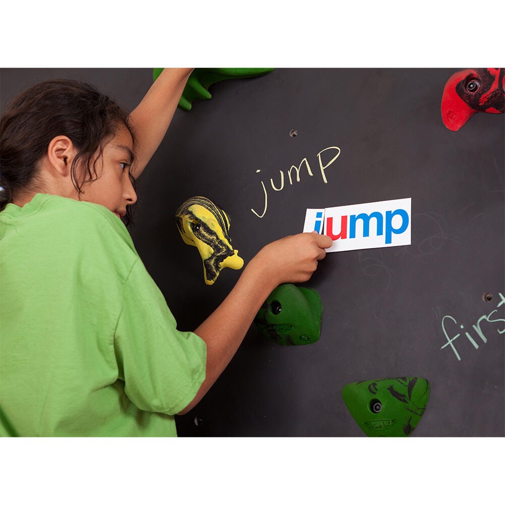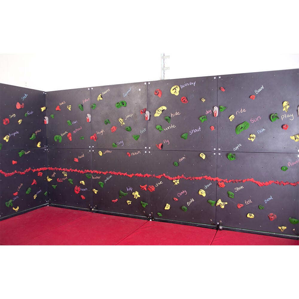 Sportime Discovery Wall Panel measuring 20 x 8 feet features a Magna black surface that's magnetic and can be written or drawn on with chalk. This panel turns any wall into an interactive classroom and can be used as a palette on which basic skills like directionality and sequencing and advanced skills like math, reading, science, history and geography can be taught. Set includes (10) 4 foot panels, T Wrench, and 90 SkillSpectrum handholds, yielding 129 surfaces.