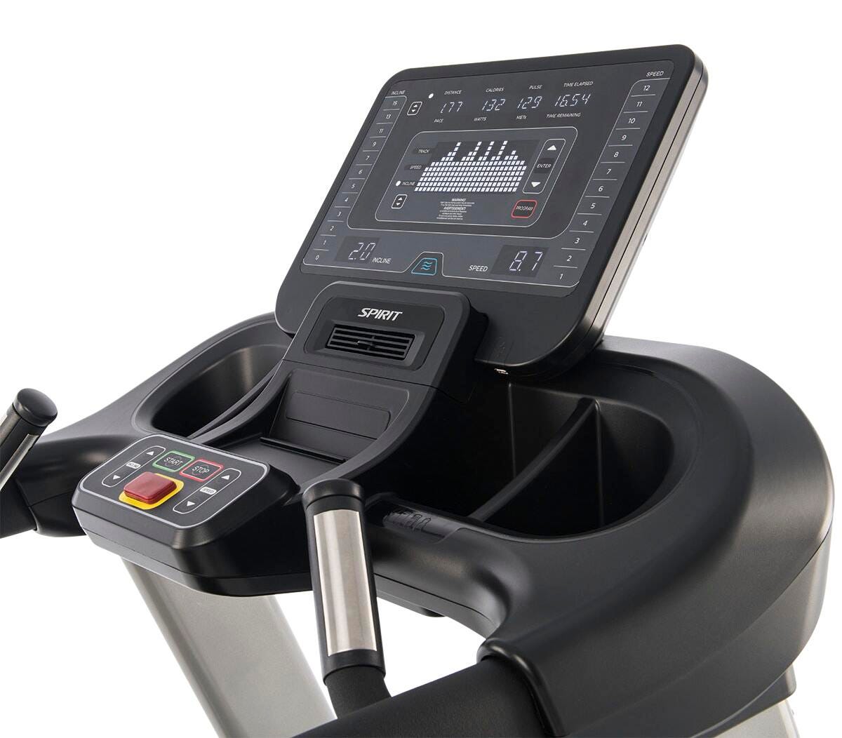 The CT800 commercial treadmill has a reputation for reliability and value that meets your space and budget needs. Weighing in at 360 lb and backed by an impressive warranty, this machine is truly heavy-duty and packs a load of premium features that keep clients happy. The top control panel boasts a simple and intuitive design with direct speed and incline buttons, multiple storage options for water bottles, phones, and other accessories, as well as a built-in fan that helps keep users cool. The ergonomically positioned hand pulse sensors let users easily monitor vital stats, while a variety of built-in programs allow nearly endless workout customization to suit a wide range of fitness levels. As with any product, a major importance is the user interface. The electronics in the CT800 are designed to provide simple and intuitive operation. The console features a large easy-to-read display with a variety of program options for users of all fitness levels, an integrated fan to keep clients cool, and a USB port with multiple storage tray options to help keep their devices charged. The addition of direct speed and incline buttons make all workouts more efficient and interval training workouts a breeze.
