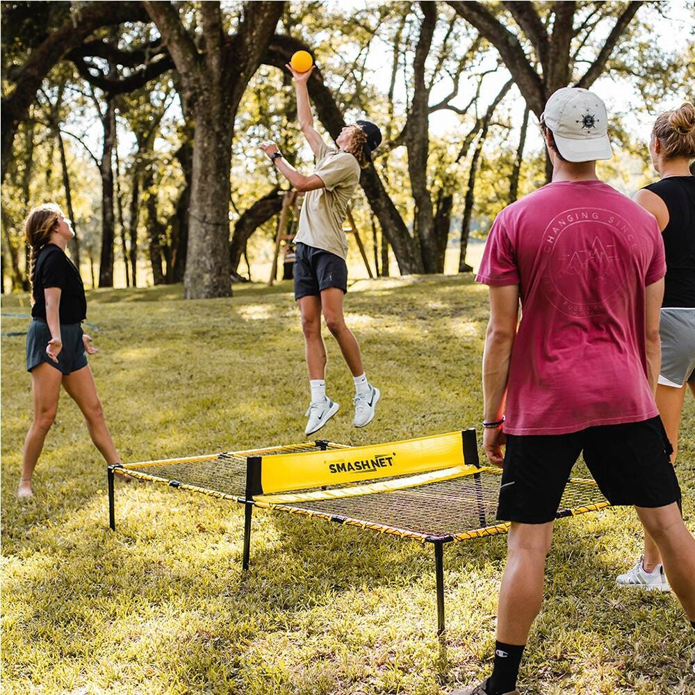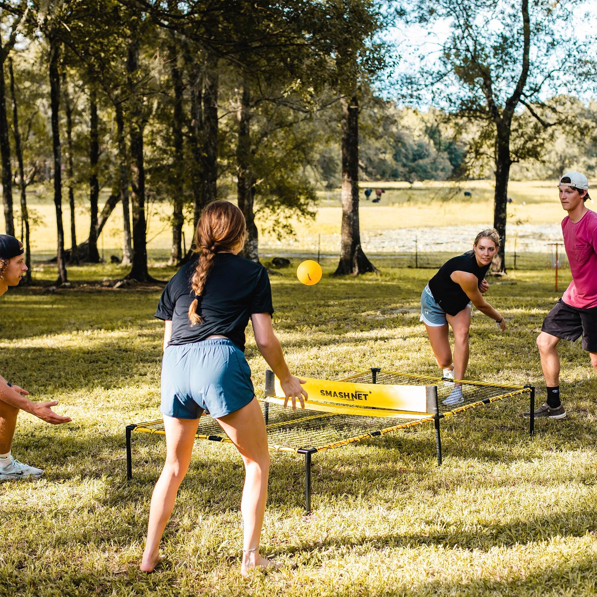 SmashNet is an exciting new game from Good Sport, perfect for the playground or backyard. Designed for players of all ages, SmashNet is a simple and extremely fun game that you can take anywhere. Teams of two smash the ball diagonally across the net and defend their side. If the ball lands on your side or your team takes more than three hits to get it over, the opponent scores. The team that gets to 11 points first wins! This engaging game is great for outdoor fun with the family, tournaments in PE classes, or challenging your friends during recess. The net table is easy to assemble and comes with a convenient drawstring storage bag so you can take SmashNet anywhere.Features