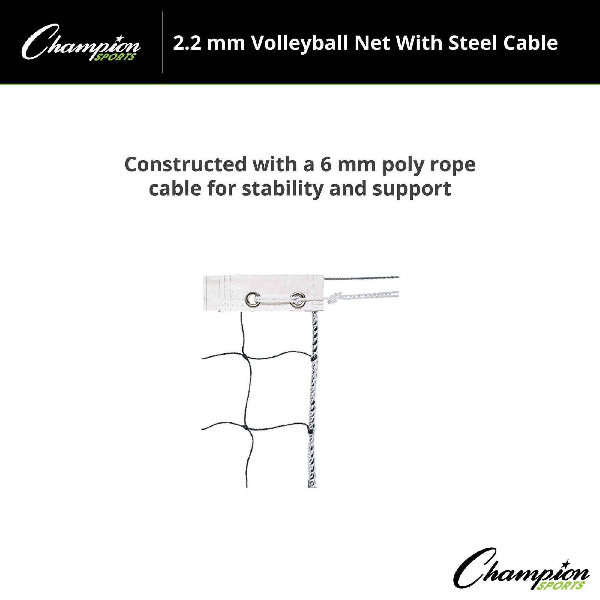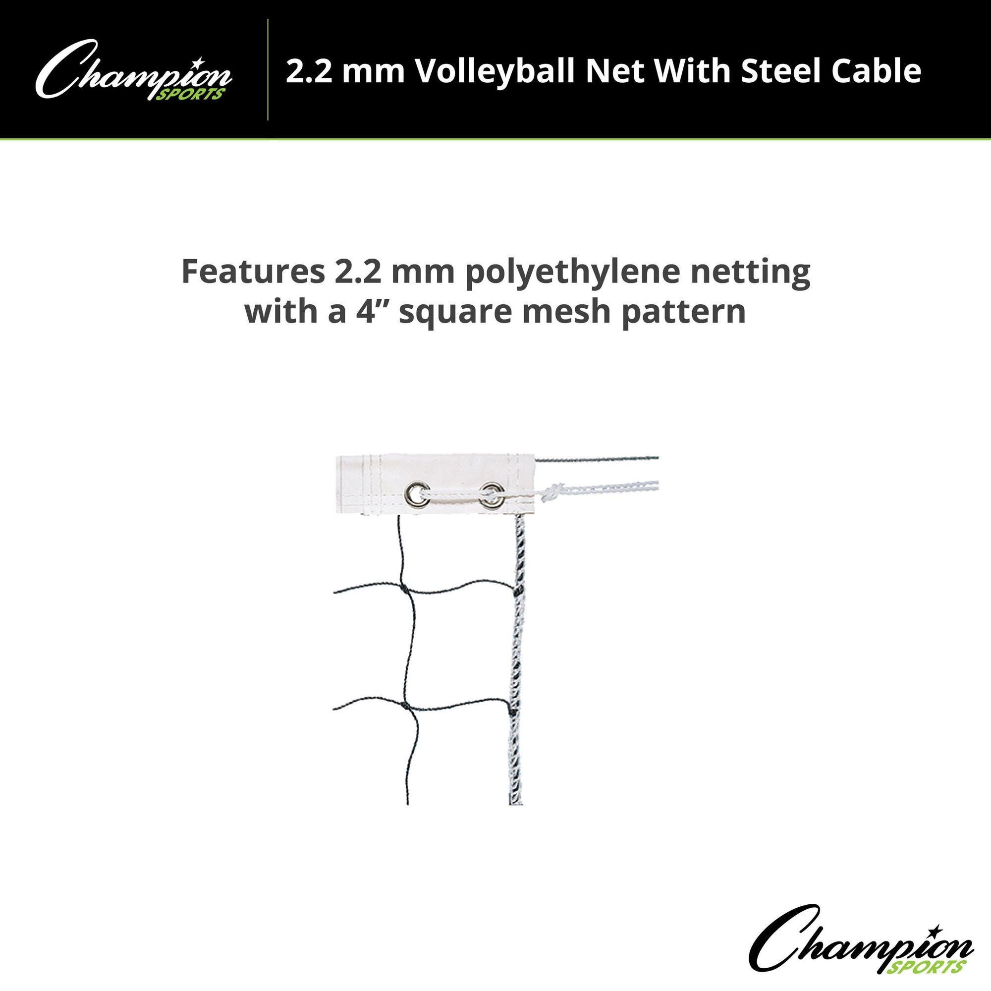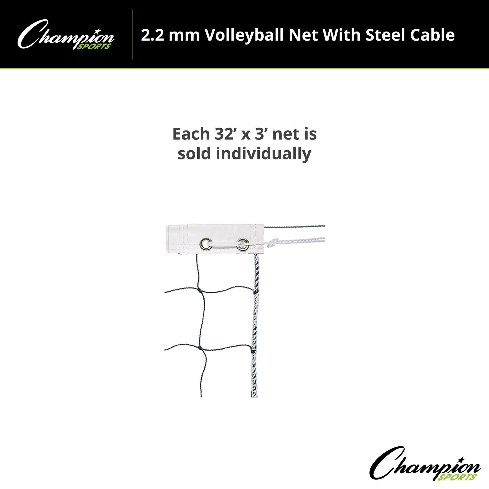 Champion Sports Volleyball Net with Steel Cable, 2.2mm Netting, 32 Feet x 3 Feet, Black and White