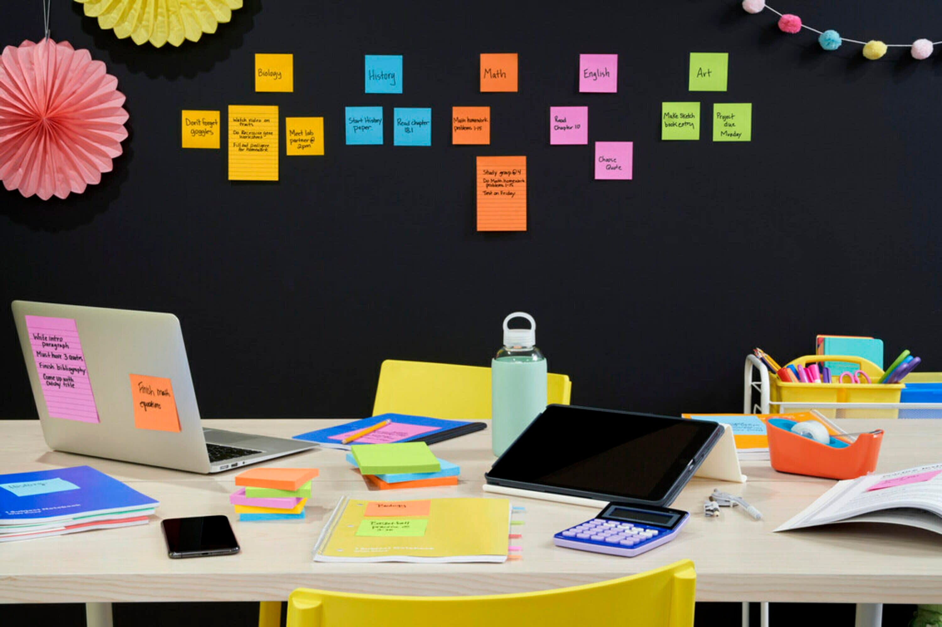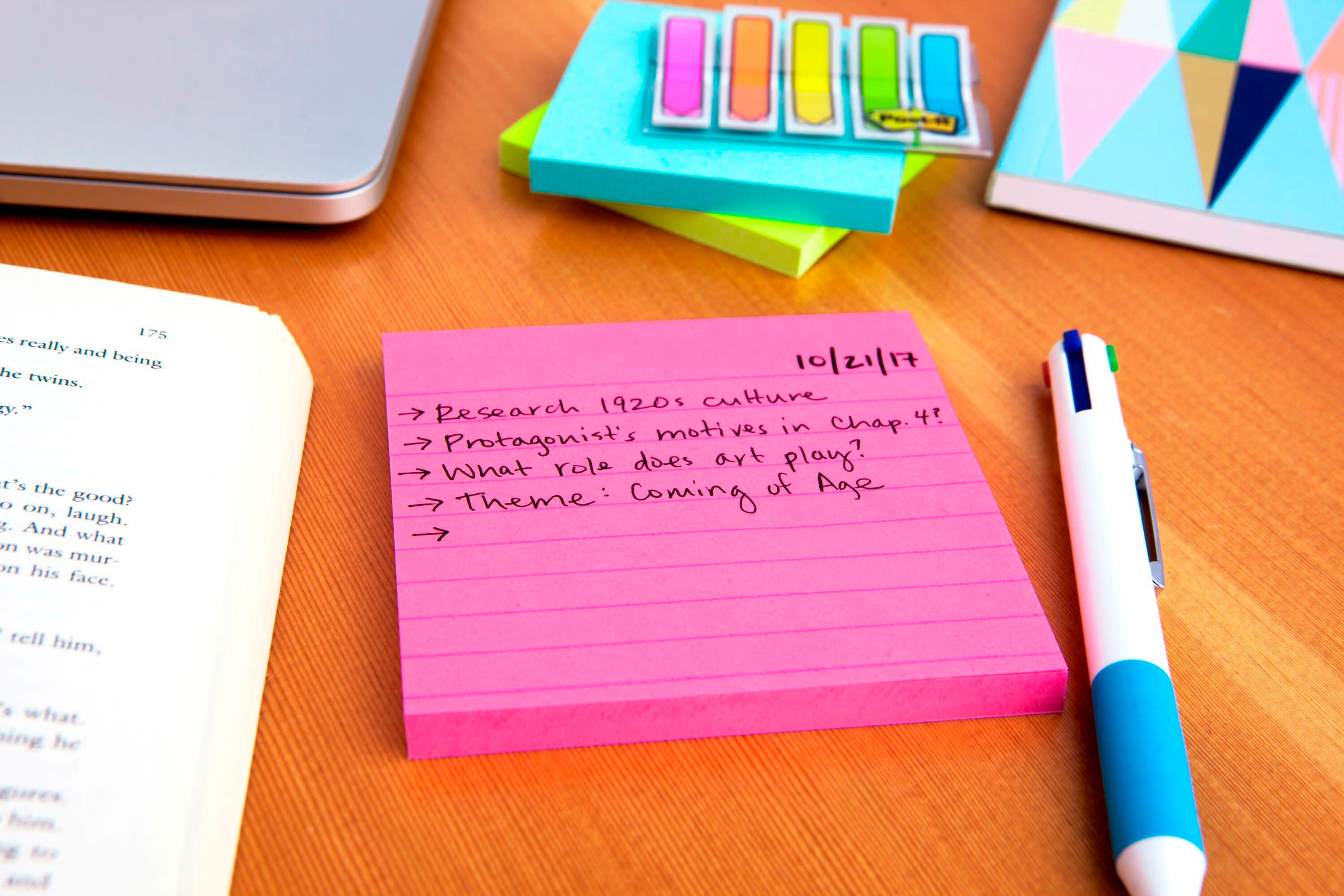The bright colors and sticky adhesive make the notes easy to find
