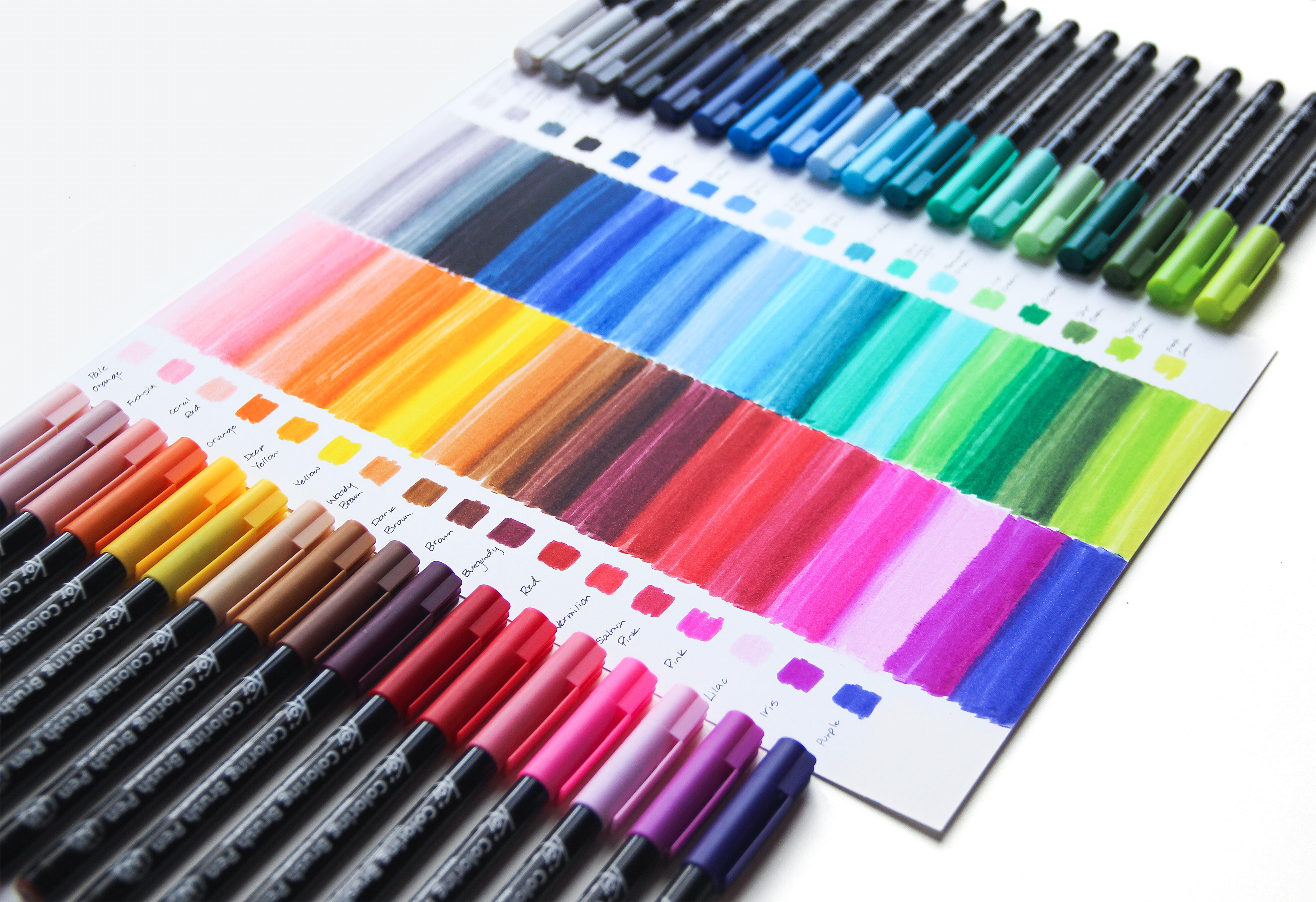 Description Sakura Koi Coloring Brush Marker with assorted transparent dye-based ink colors blend easily to make a multitude of hues and effects. Brush adds bright color to any sketch, journal, cartoon and illustration. Colorless blender pen features flexible nylon tip to create seamless washes and color gradations. Brush pen is odorless and sold as 24 per set.