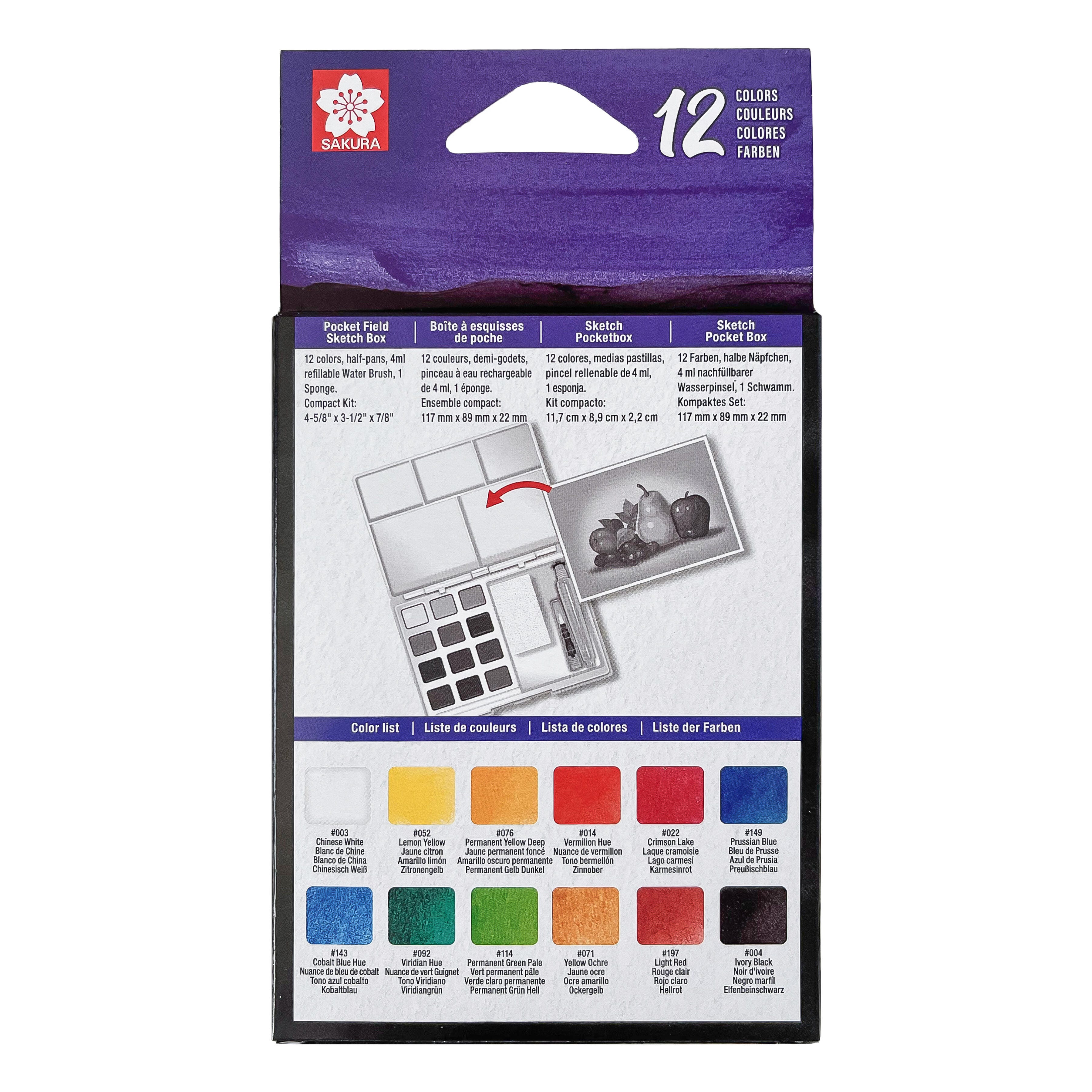 Sakura Koi Watercolors Pocket Field Sketch Box, Set of 12 Colors with Brush