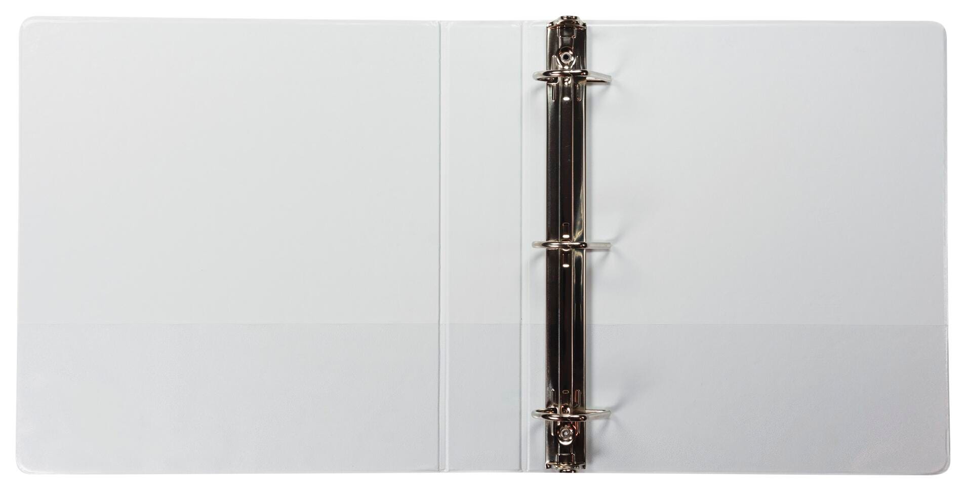 - D-ring binder has rings mounted on back lid and 2 sturdy pockets inside for paperwork storage