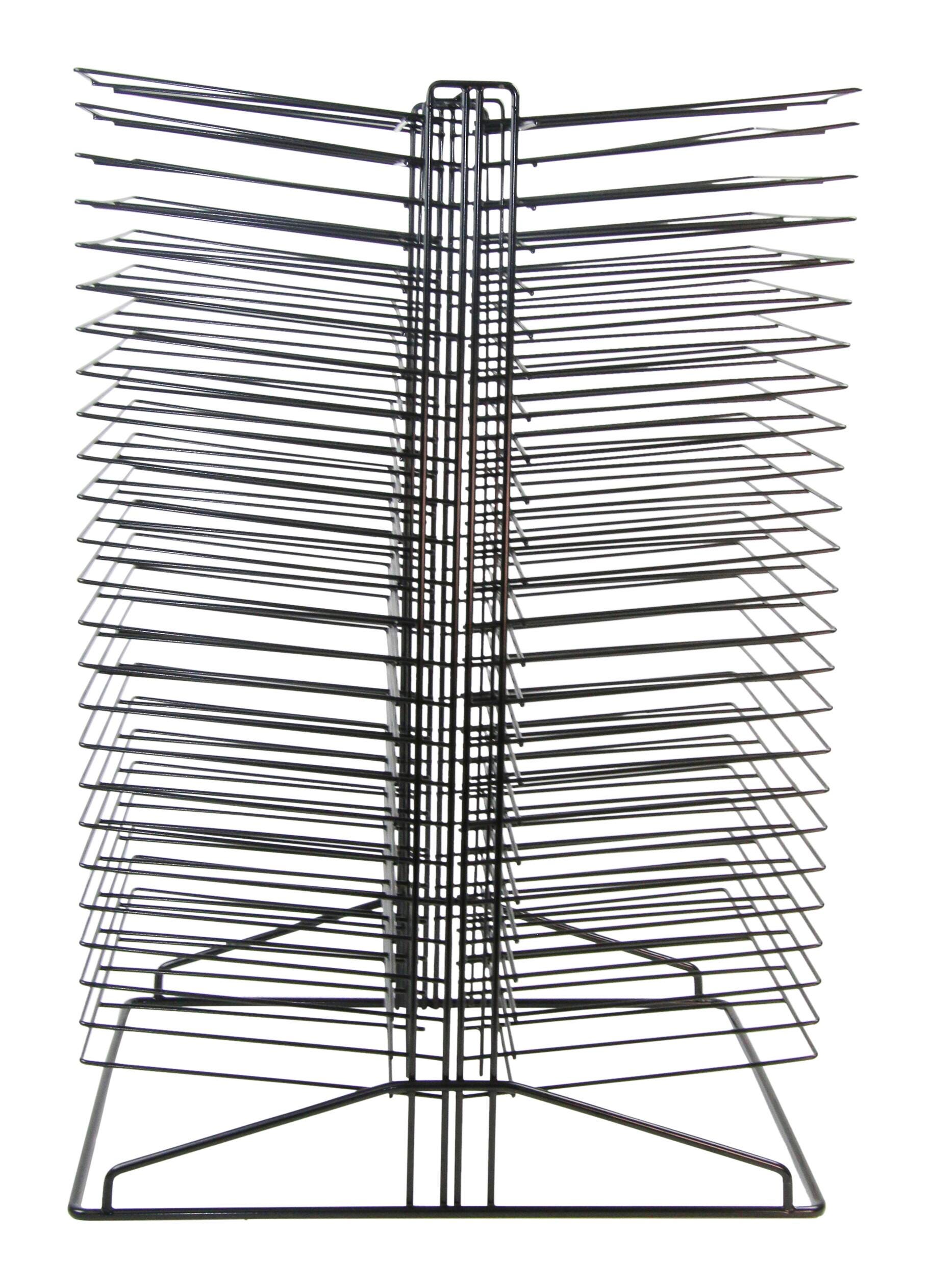 Intuitive design, made to match your space. The Sax Table Top Drying rack features a classic black powder coat finish that protects it from corrosion, making it resistant to scratches and other light abrasions that may happen in your dynamic space. The drying rack sits on a reinforced base that surrounds the whole rack, which keeps the shelves stable even when they're fully loaded. It features 50 shelves, 25 shelves per side, for ample space to store projects and plenty of space between shelves to allow airflow for quick and efficient drying. This intuitive art storage and drying center measures 16 L x 20 W x 30 H inches.
