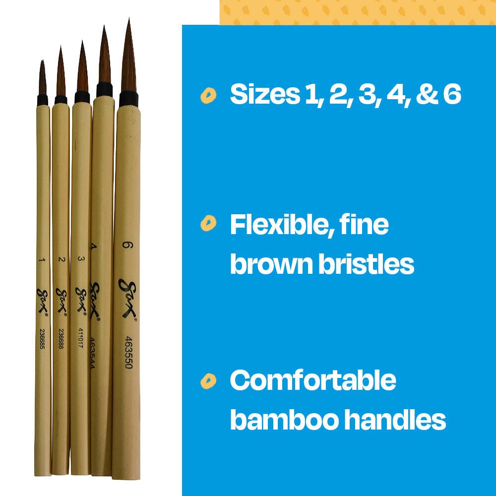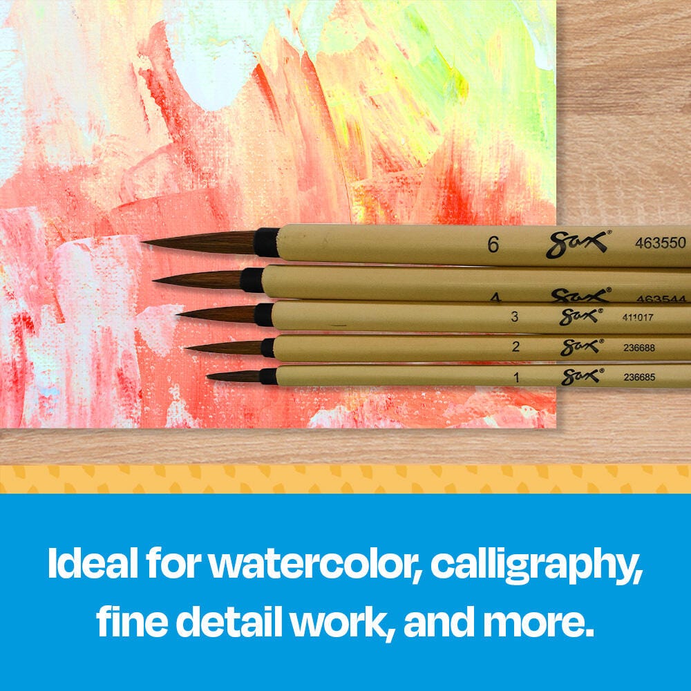 Sax Bamboo Watercolor Paint Brushes, Fine Tip, Assorted Sizes, Set of 5