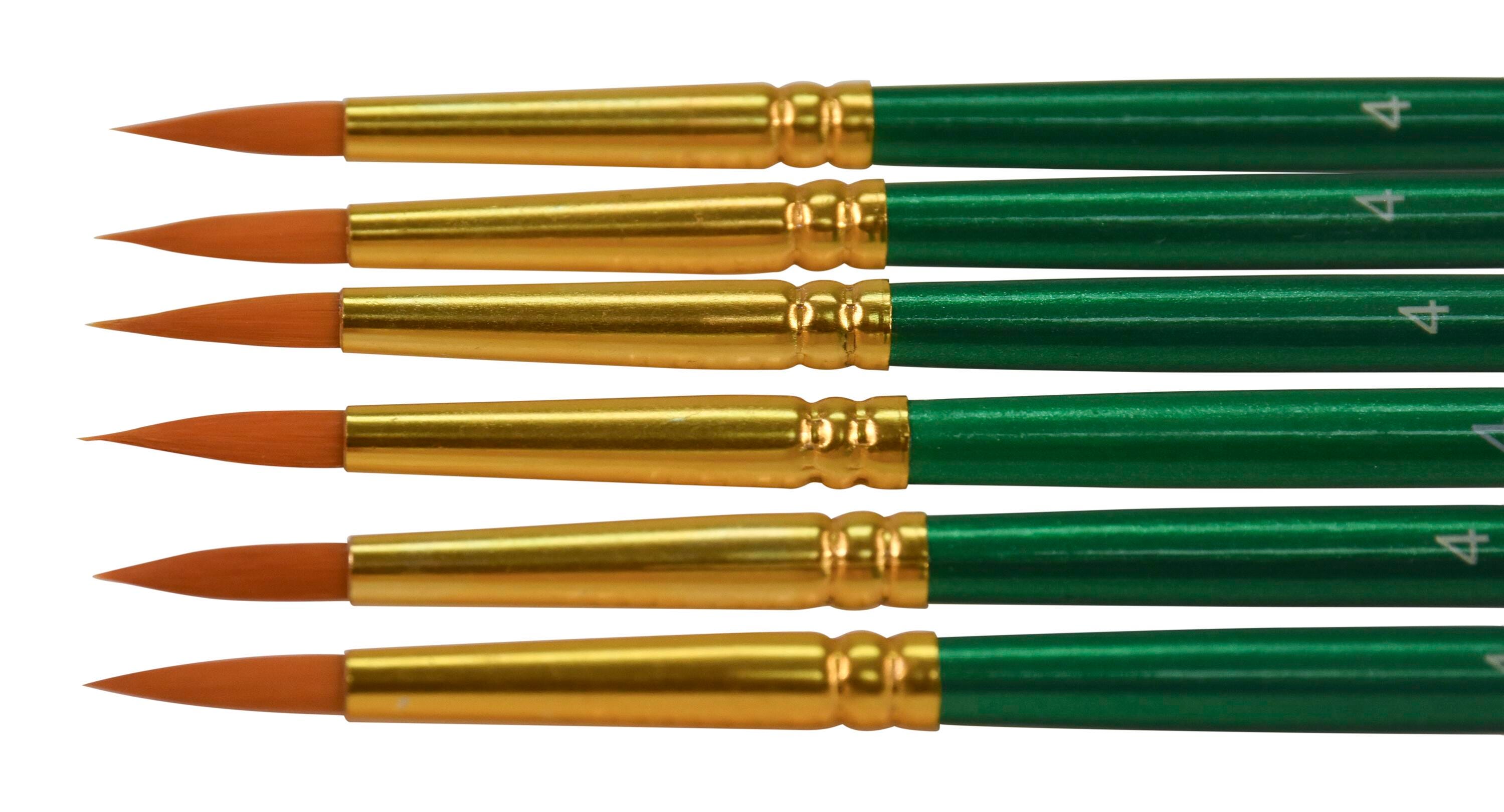 • Sax Optimum Golden Synthetic Taklon Paint Brushes, Round Type, Short Handle, Size 4, Set of 6
