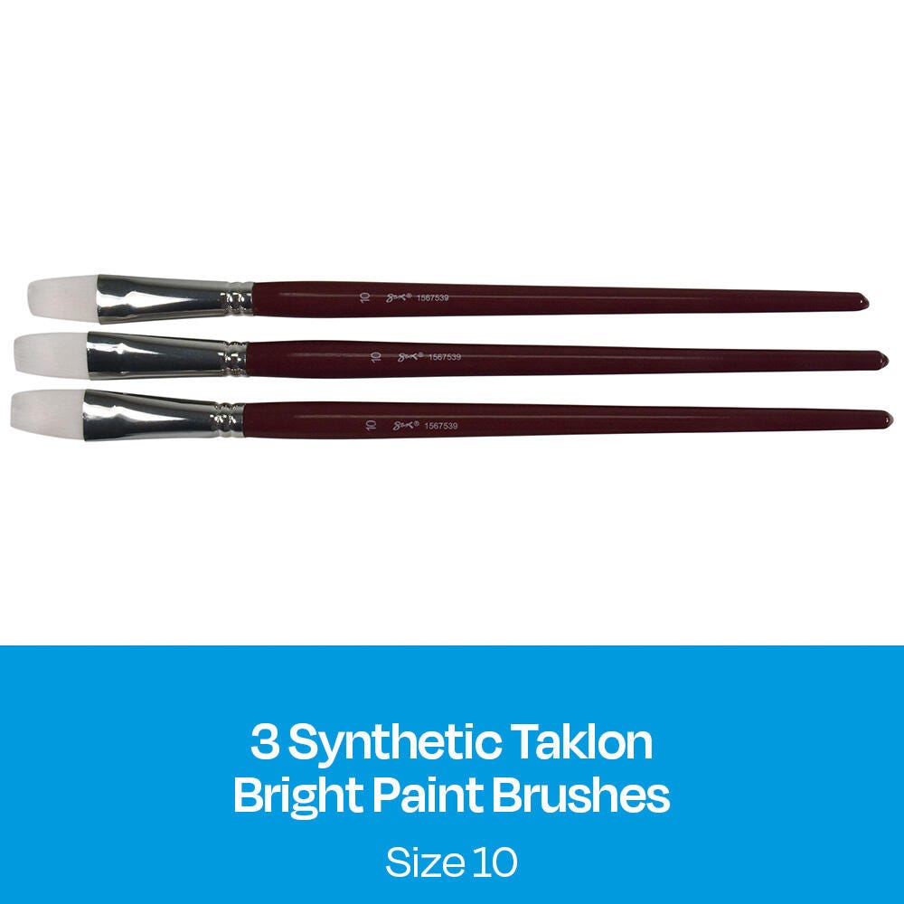 • Sax Optimum White Taklon Synthetic Paint Brushes, Bright Type, Long Handle, Size 10, Set of 3