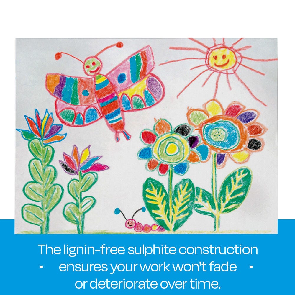 Description This high-quality, 100 percent sulphite paper from Sax is standard weight and accepts dry and wet media, including tempera, watercolor, and brushed-applied ink. Standard weight paper has exceptional body and strength, perfect texture for all dry media renderings, and erases well. The brilliant white stock enhances colored pencil, heavy black pencil, and charcoal drawings.Features Strong, durable construction provides a variety of uses Perfect for use with dry media, markers, crayons, colored pencils, pens, charcoal, and light washes of wet media Colors from any medium pop against the extra-crisp white Ideal paper for artists of all levels Best value for classrooms, offices, businesses, studios, or right-at-home