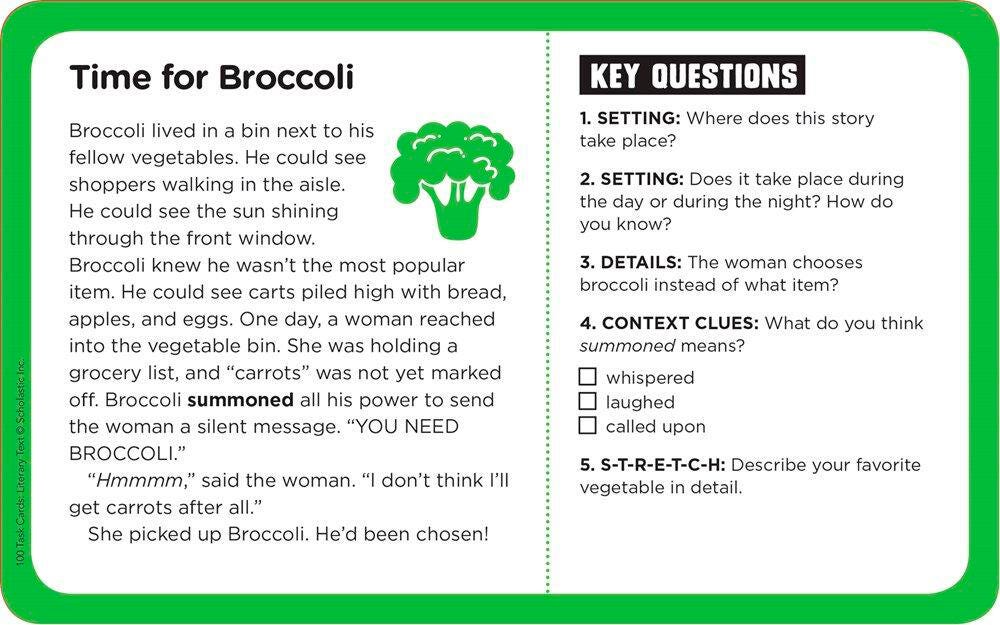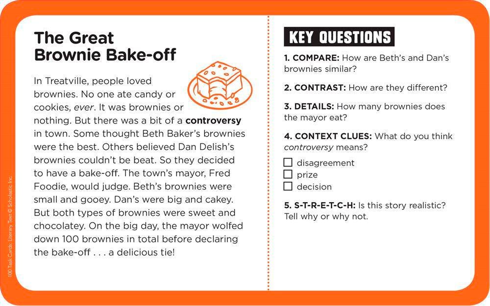 Description This rich collection of ready-to-use task cards features a wide range of informational mini-passages that vary by topic, form, tone, and purpose. Each card includes five comprehension questions that guide students to identify main idea, make inferences, sequence events, compare and contrast, determine author’s purpose and more. Also includes 14 comprehension-helper cards that provide kid-friendly definitions, tips, and examples to help students master reading skills. Grades 4 through 6.Features Perfect for seatwork, centers, or homework Includes Comprehension Helper Cards that help kids master key reading skills