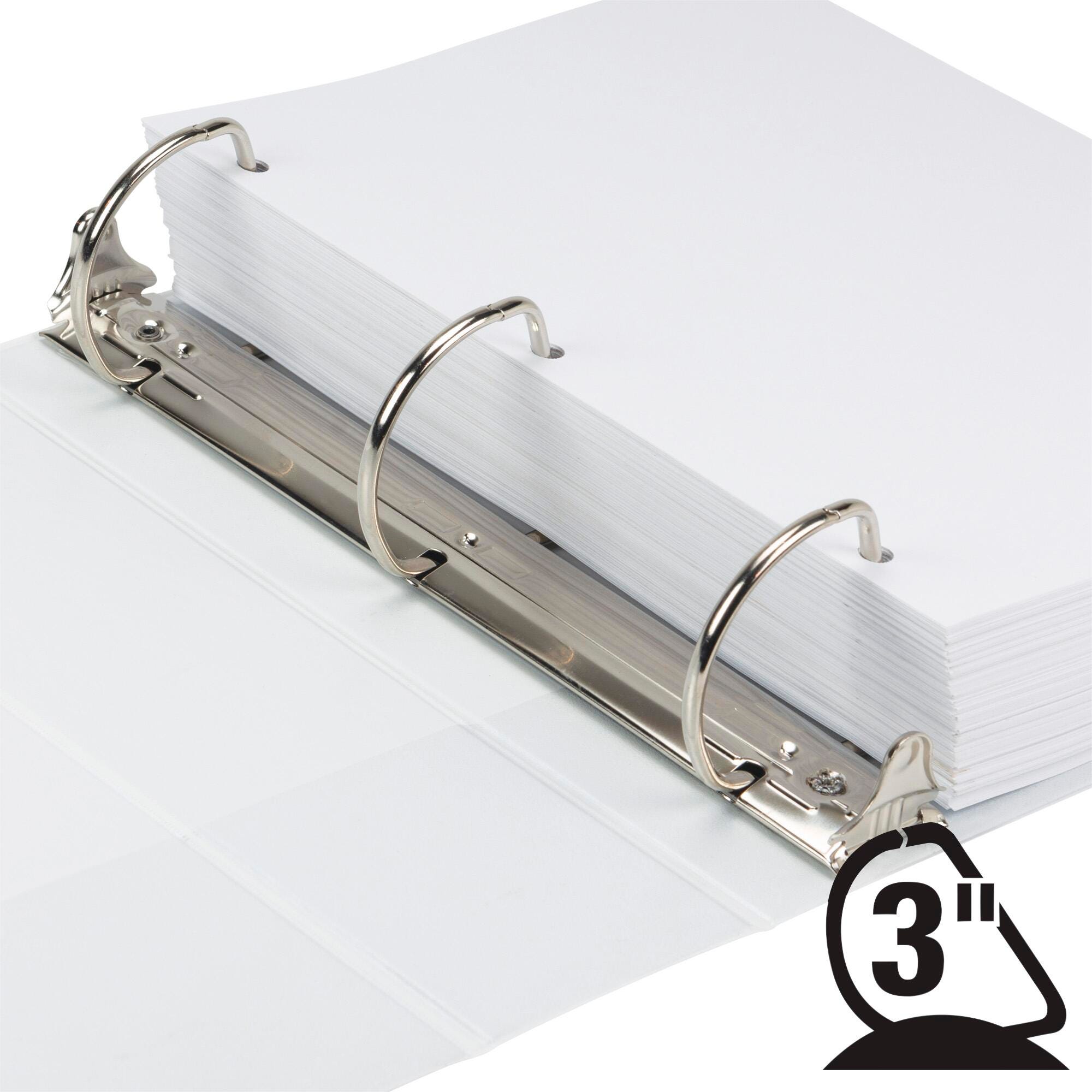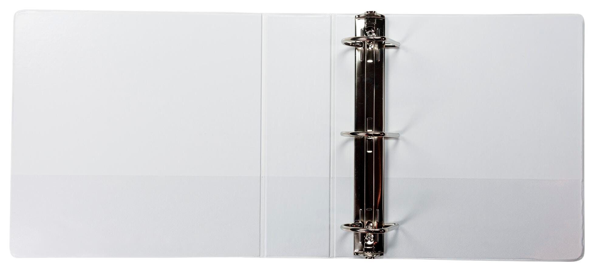 - D-ring binder has rings mounted on back lid and 2 sturdy pockets inside for paperwork storage