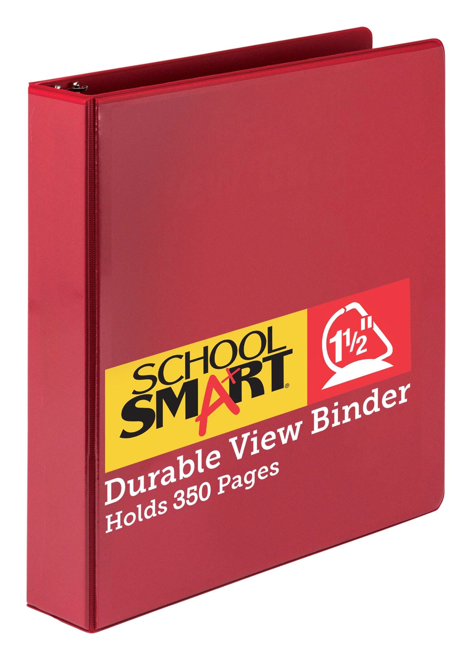 School Smart Durable Polypropylene D-Ring View Binder, 1-1/2 Inches, Red