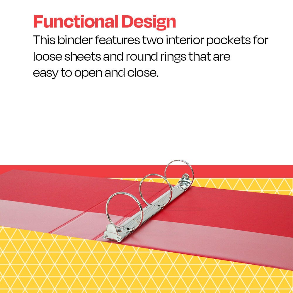 School Smart Polypropylene Round Ring View Binder, 2 Inches, Red