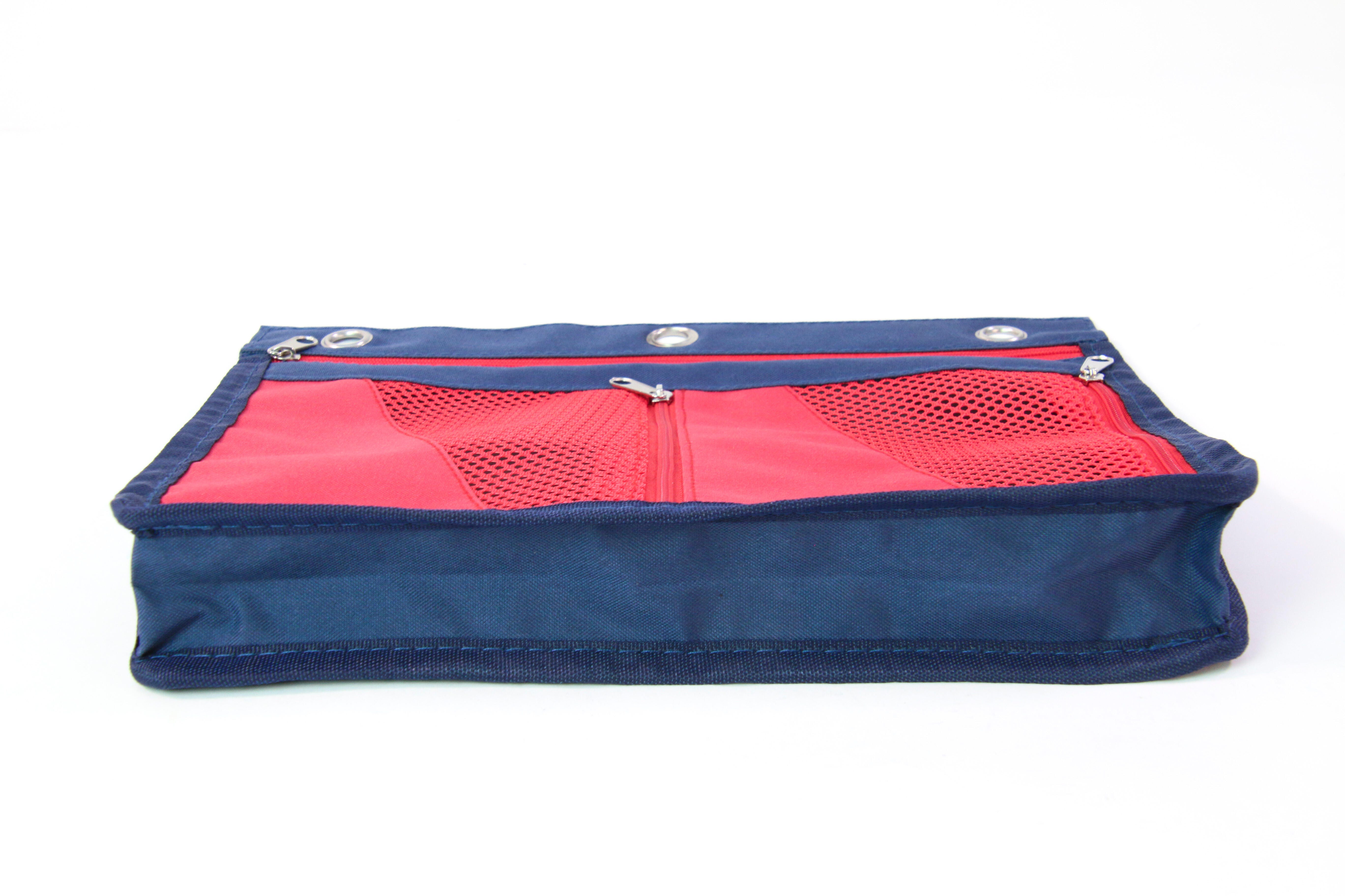 The School Smart Red Binder Pouch provides a handy storage solution for your classroom and office essentials. The binder pouch features three 1/2 inch reinforced grommets and is designed to fit into 2 or 3-ring binders. It has a large zipper pocket and two smaller mesh zipper pockets that easily store pens, pencils, erasers, notes, and more. The 9 x 11 inch pouch expands 1-1/2 inches to fit a variety of supplies of different sizes.Features