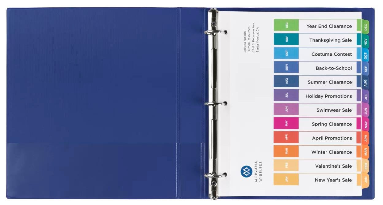 Avery Ready Index Dividers, 12 Tab, Jan-Dec, Assorted Colors, 1 Set