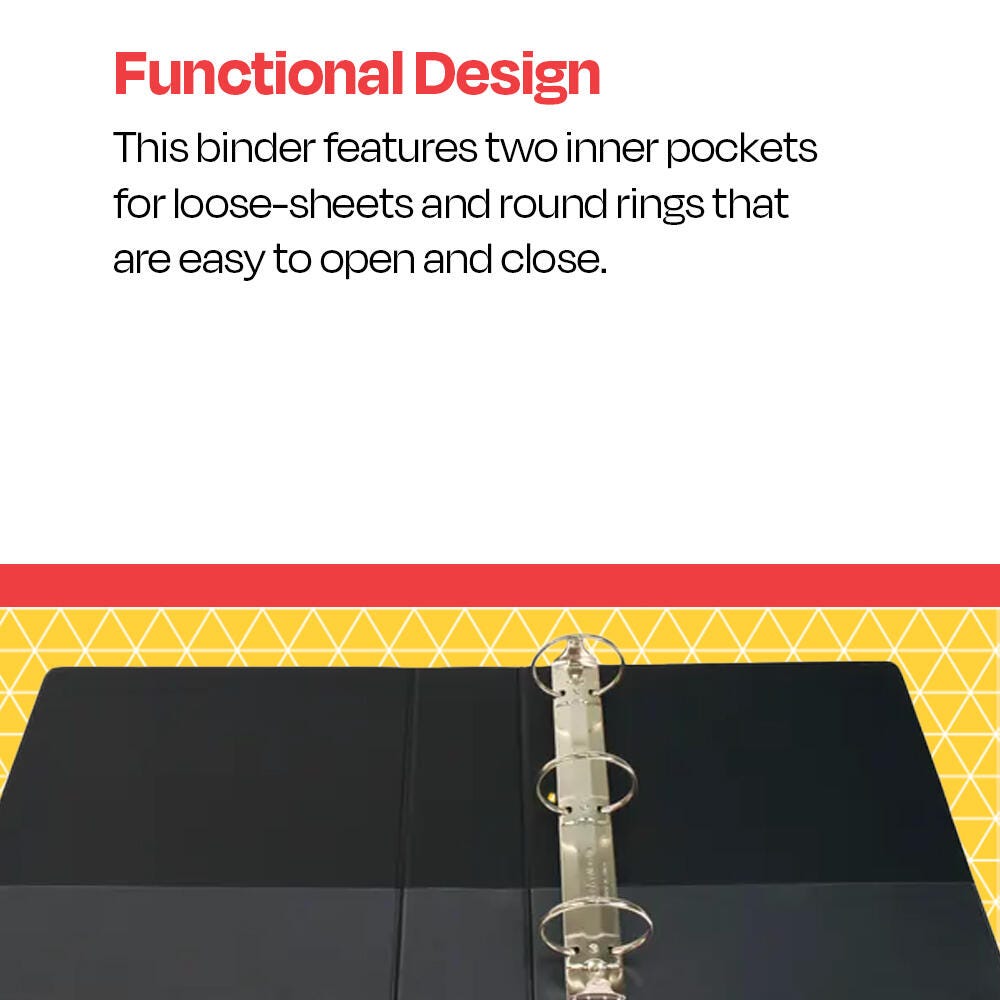 The large black presentation binder with 3 inch O rings creates better organization and easy access for various classroom presentations, projects, and paperwork at school, the office, or home