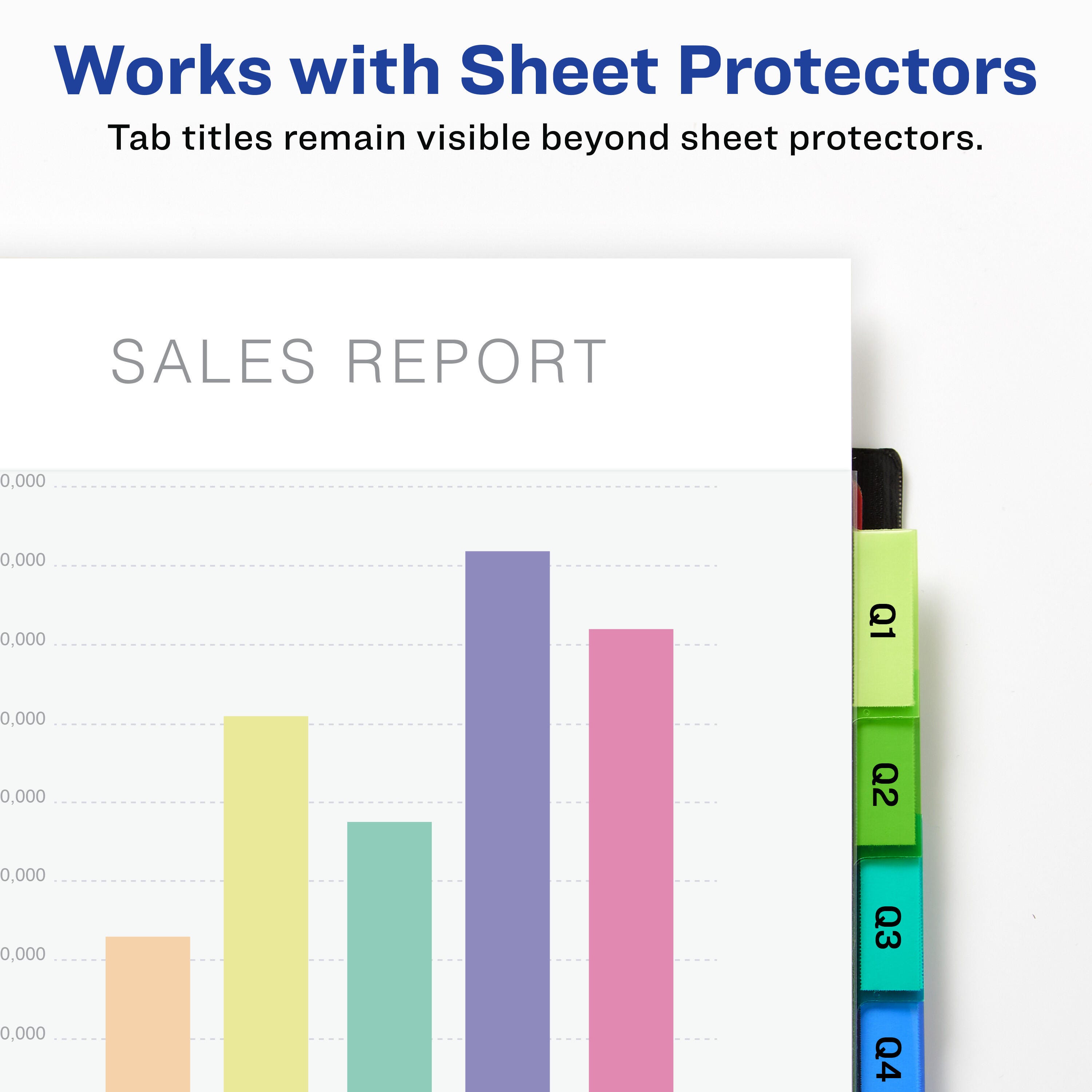 Set of 8 dividers in assorted translucent colors provide easy color-coding at a glance in your binder