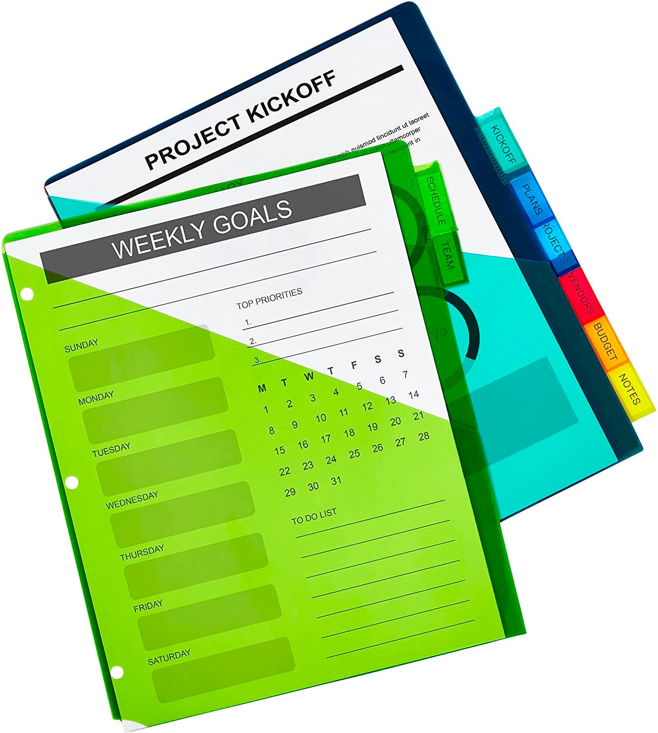 - Set of 8 dividers in assorted translucent colors provide easy color-coding at a glance in your binder