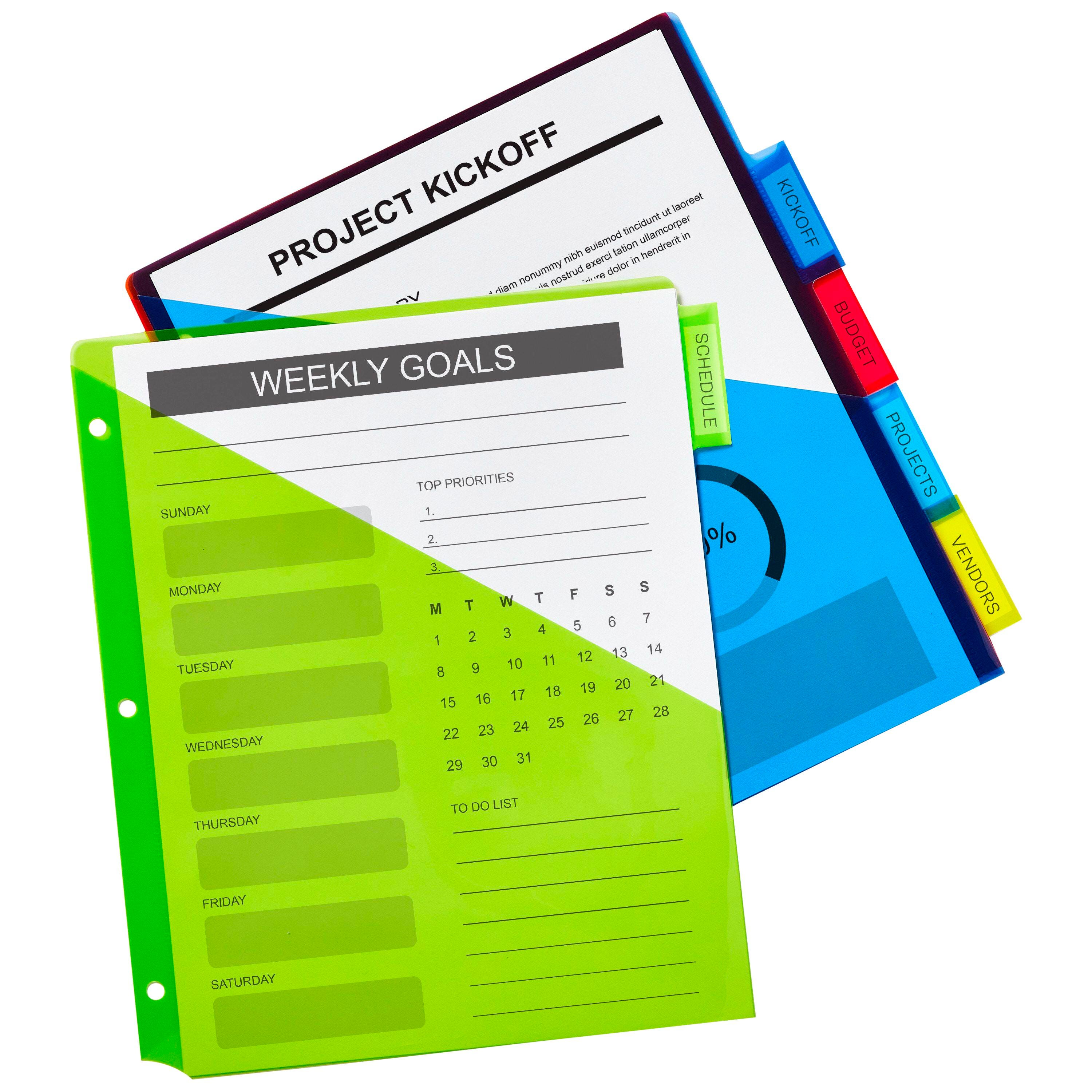 Set of 5 File Folder Tab Dividers Include One in Each Color: