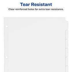Write directly on the nonlaminated tabs of these dividers. Clear plastic reinforced binding edge for tear-resistance at binder holes.Features