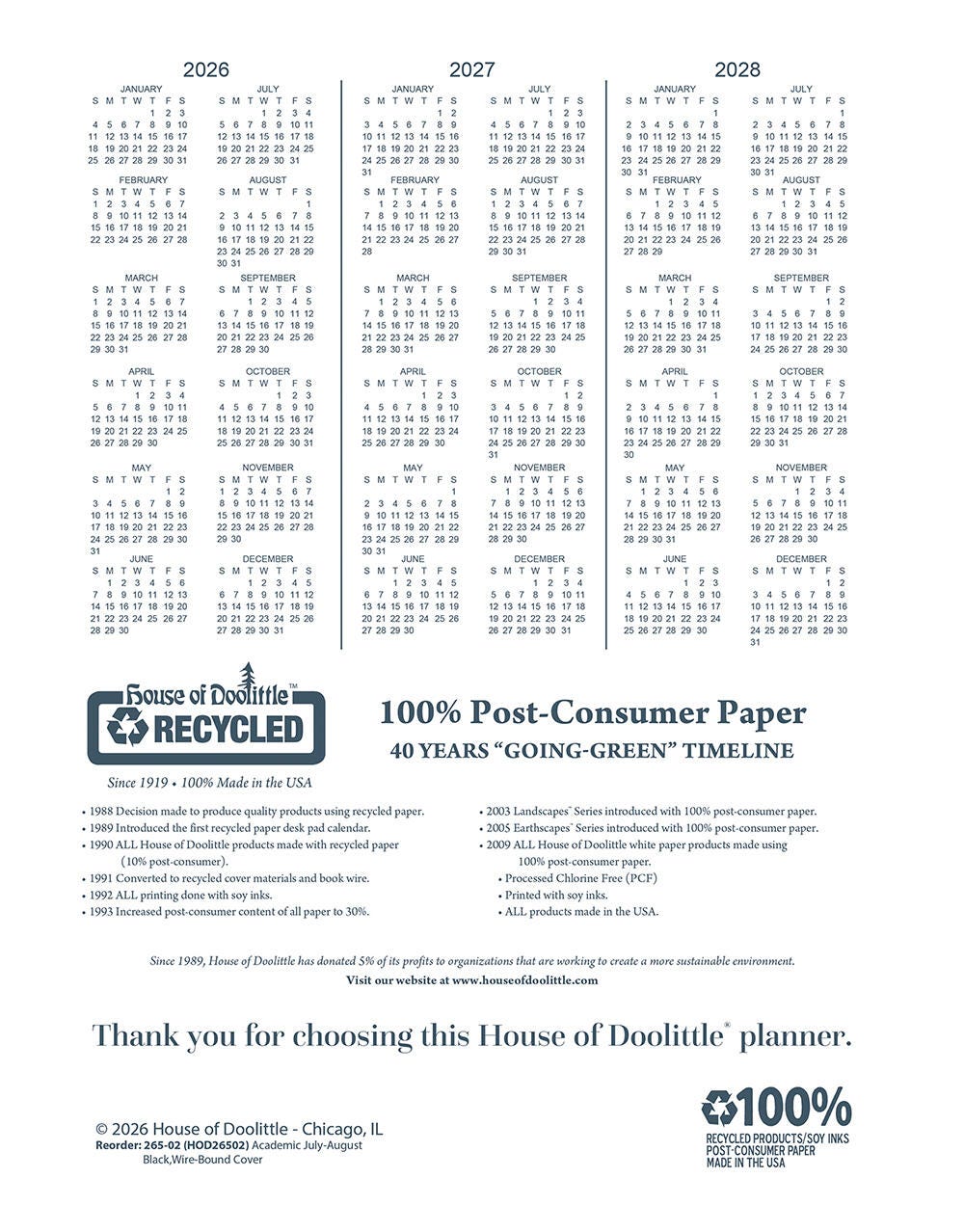 House of Doolittle Recycled Monthly Academic Planner, 2 Years, July 2026 to June 2027, 8-1/2 x 11 Inches