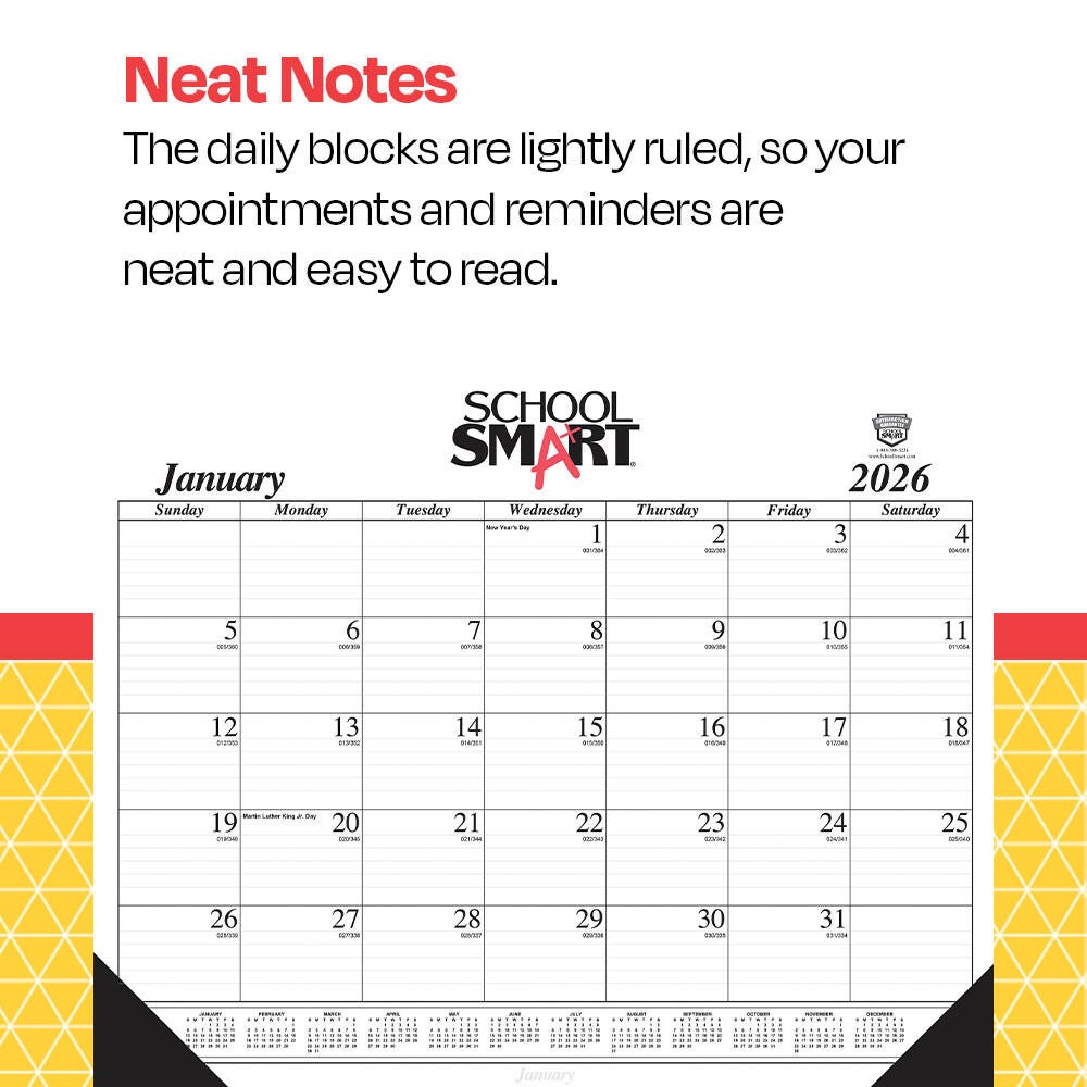 School Smart Desk Pad Calendar, January-December 2026, 22 x 17 Inches