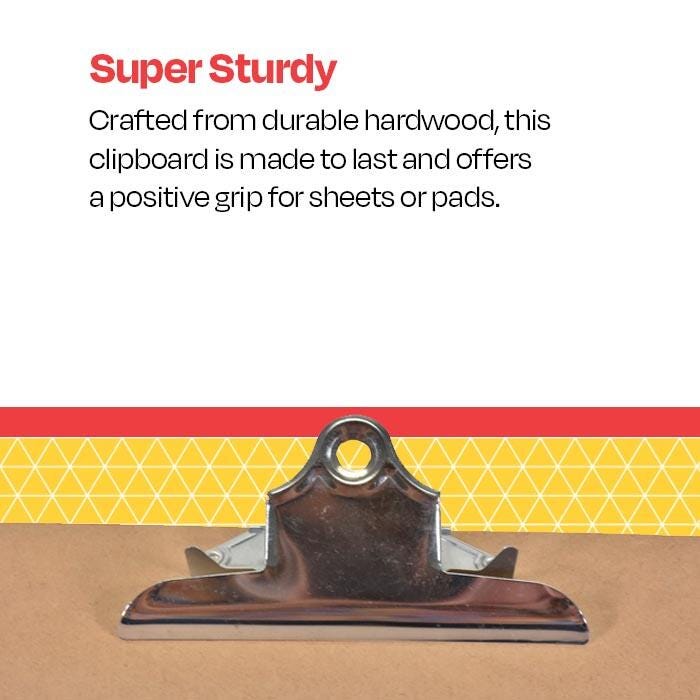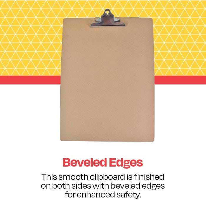 Durable hardwood clipboard features smooth surface that is easy to write on