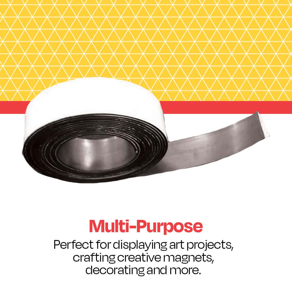 Turn any surface into a magnetic memo board with the School Smart magnetic tape roll. The magnetic rubber strip can be easily cut into any desired size for creating custom education tools, play magnets, decorations, and more. Our rubber strip is adhesive backed, and the full roll measures 1 inch x 200 feet.