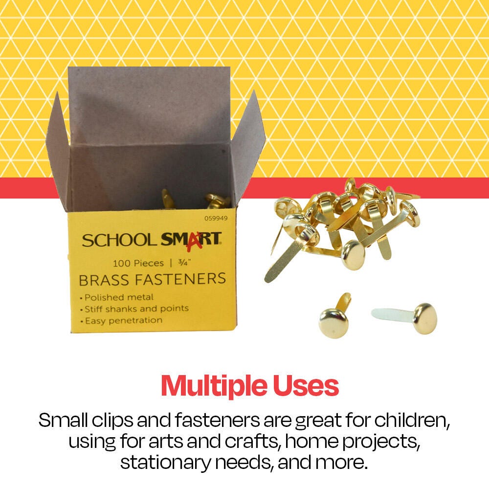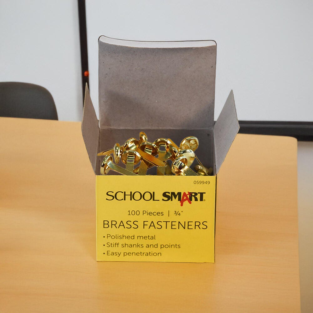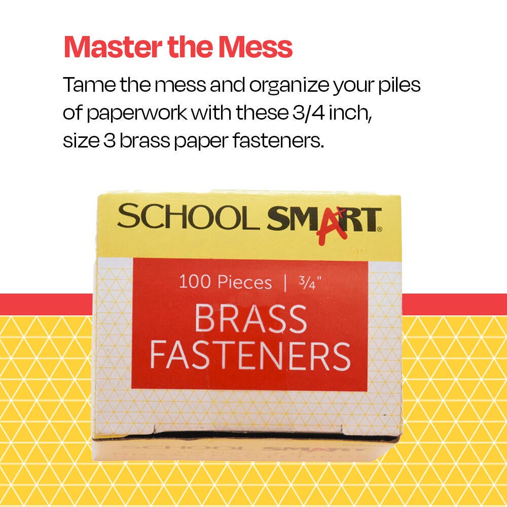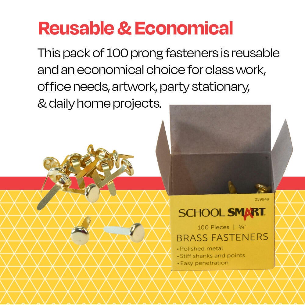 School Smart Prong Fasteners, 3/4 Inches, Size 3, Brass Plated, Pack of 100