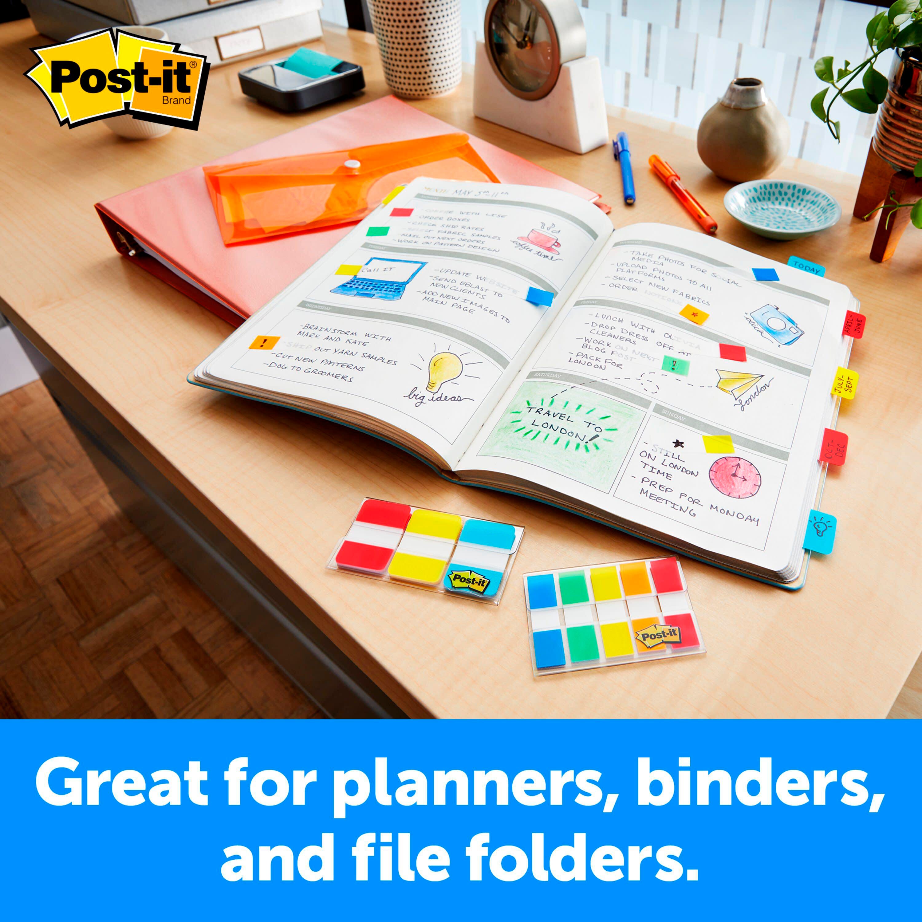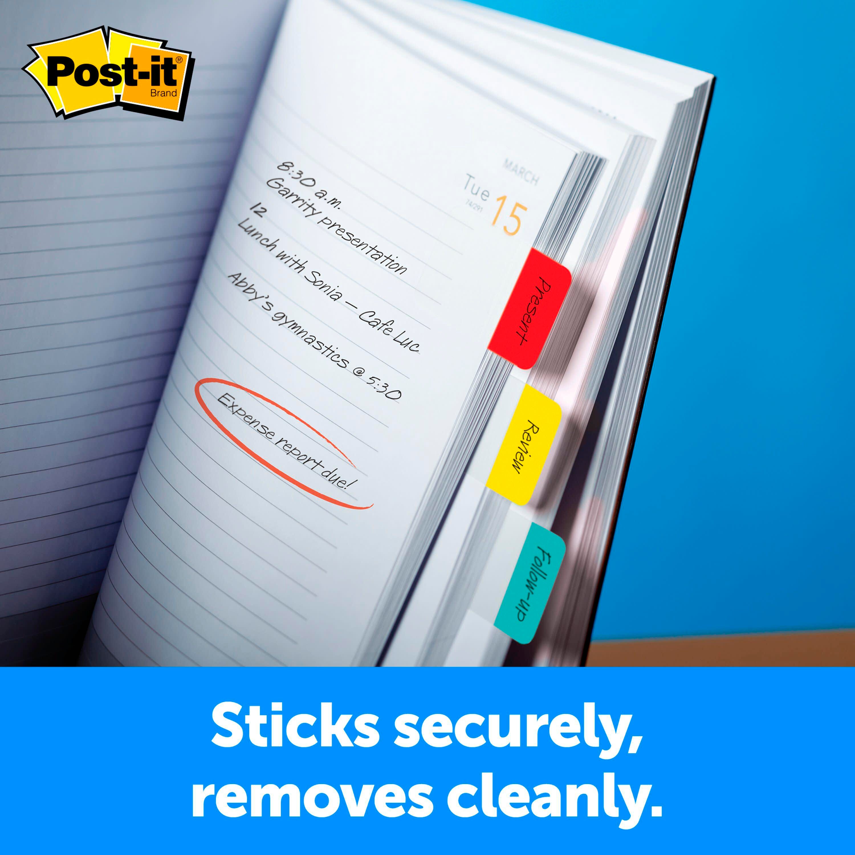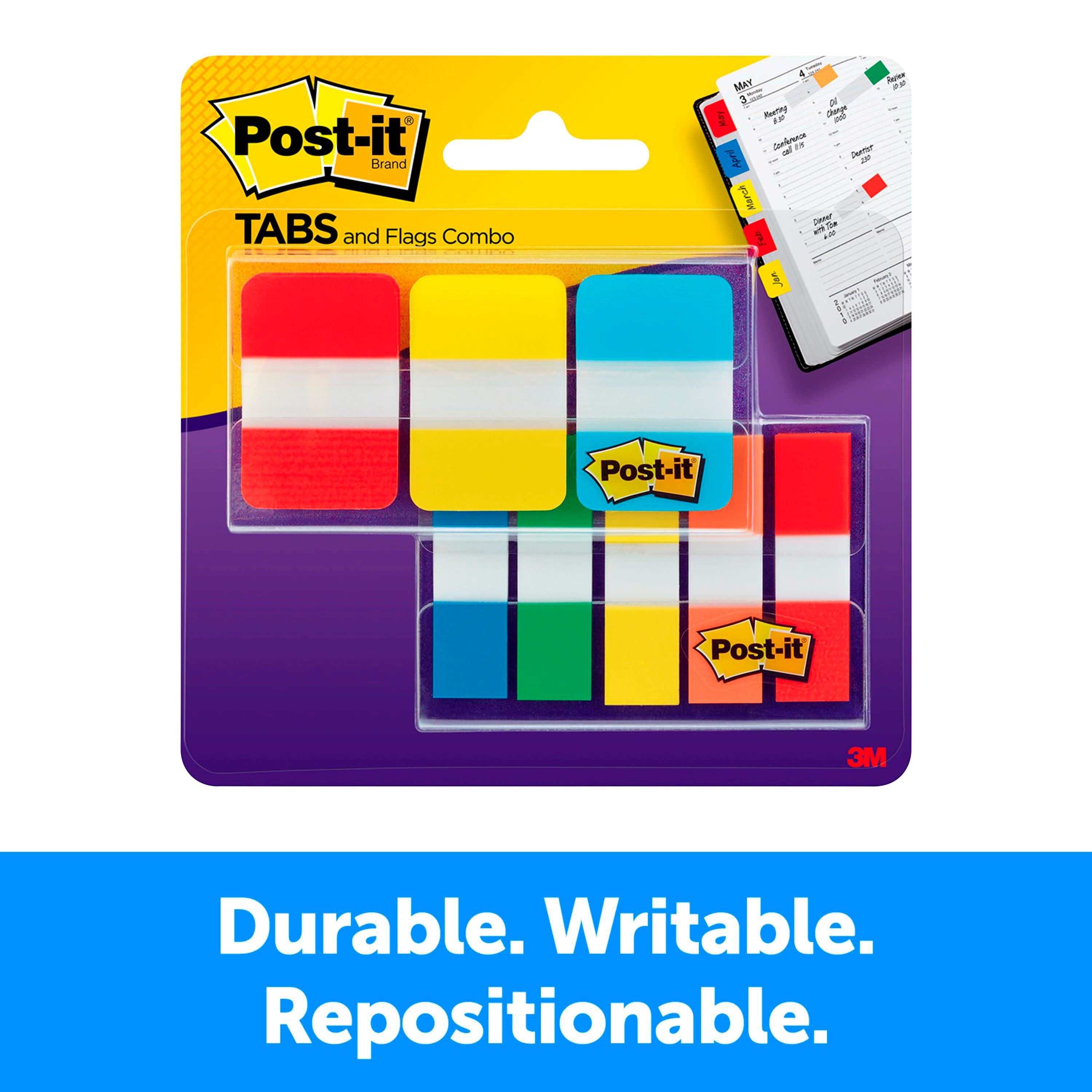 Post-it Tabs and Flags help create necessary order and direct attention to important information. Both work great for planners, binders, and file folders as they stick securely but remove cleanly. This set includes 36 Tabs and 100 Flags.