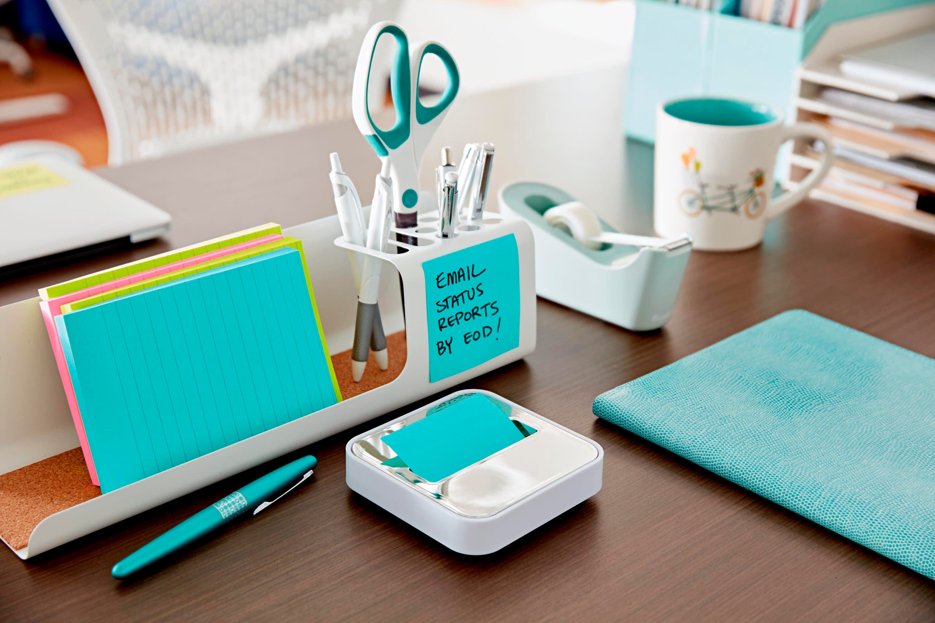 A Post-it Pop-up Note Dispenser with a unique design, it puts the weight on top! This steel top white dispenser lets the color of your favorite notes take center stage. This dispenser will allow you to have Post-it notes at your fingertips and ready to use whenever you need them. It comes with 45 sheets of Super Sticky Notes.