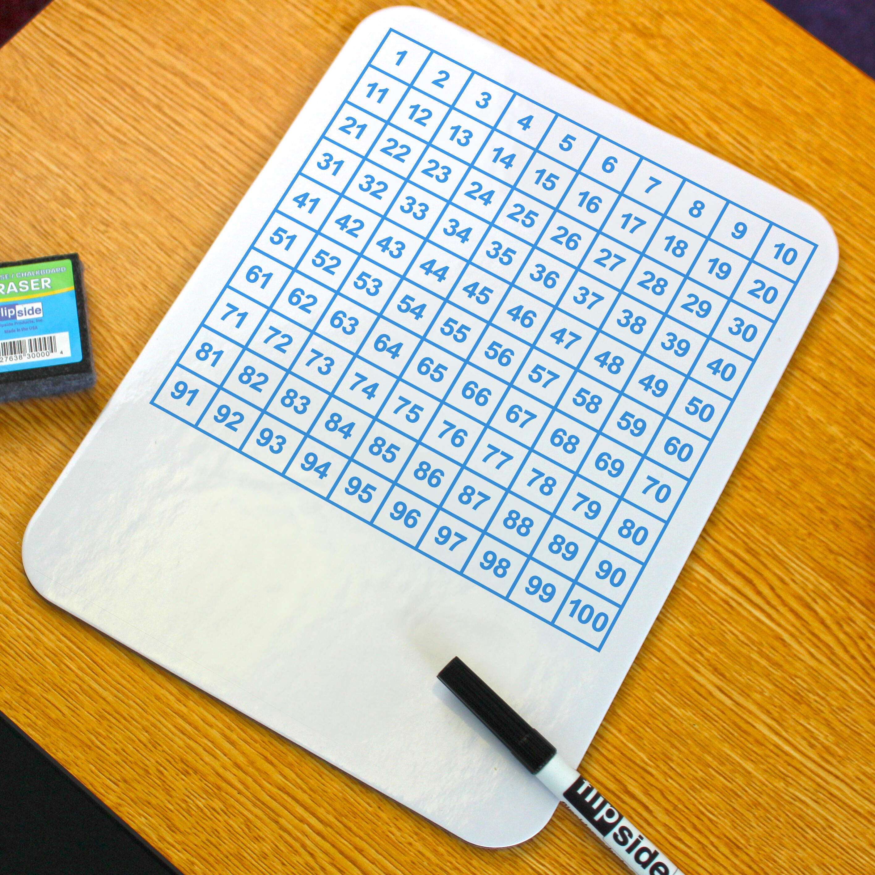 Flipside Math Hundreds Grid Dry Erase Board, Two Sided, 9 x 12 Inches, Pack of 24