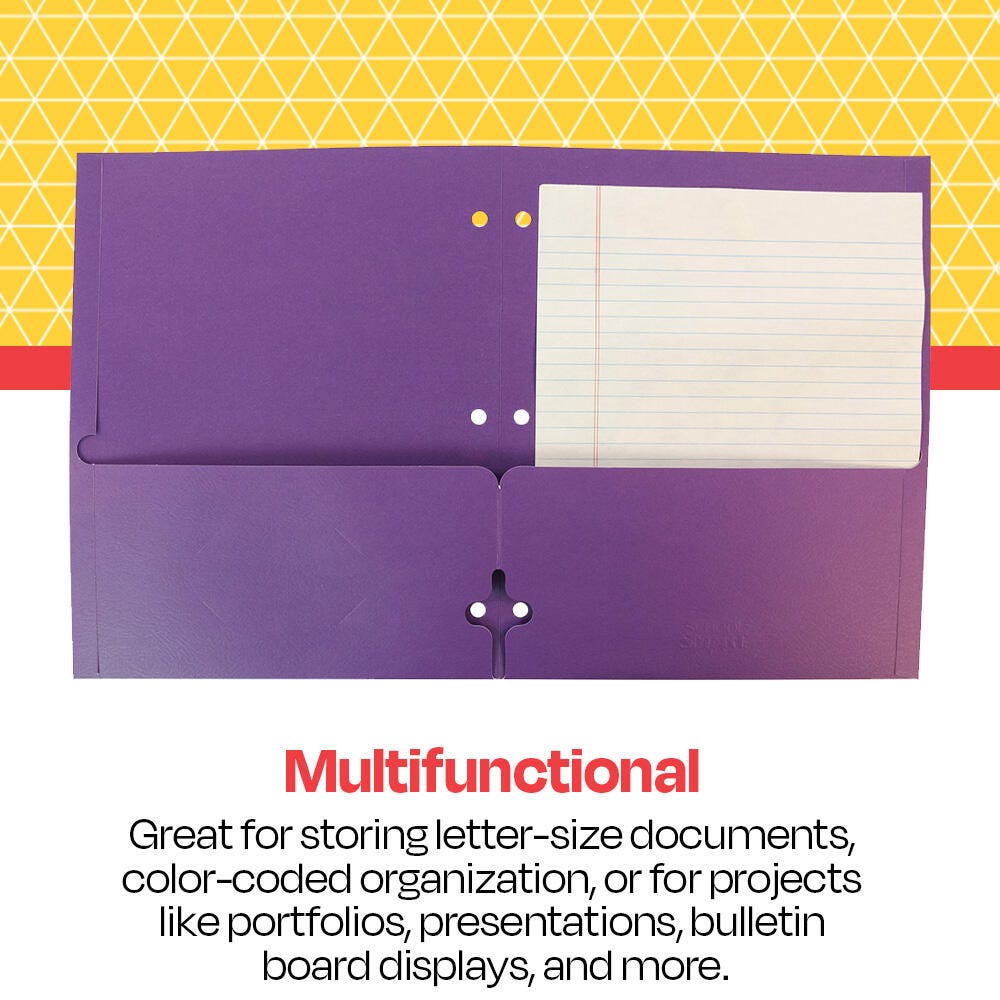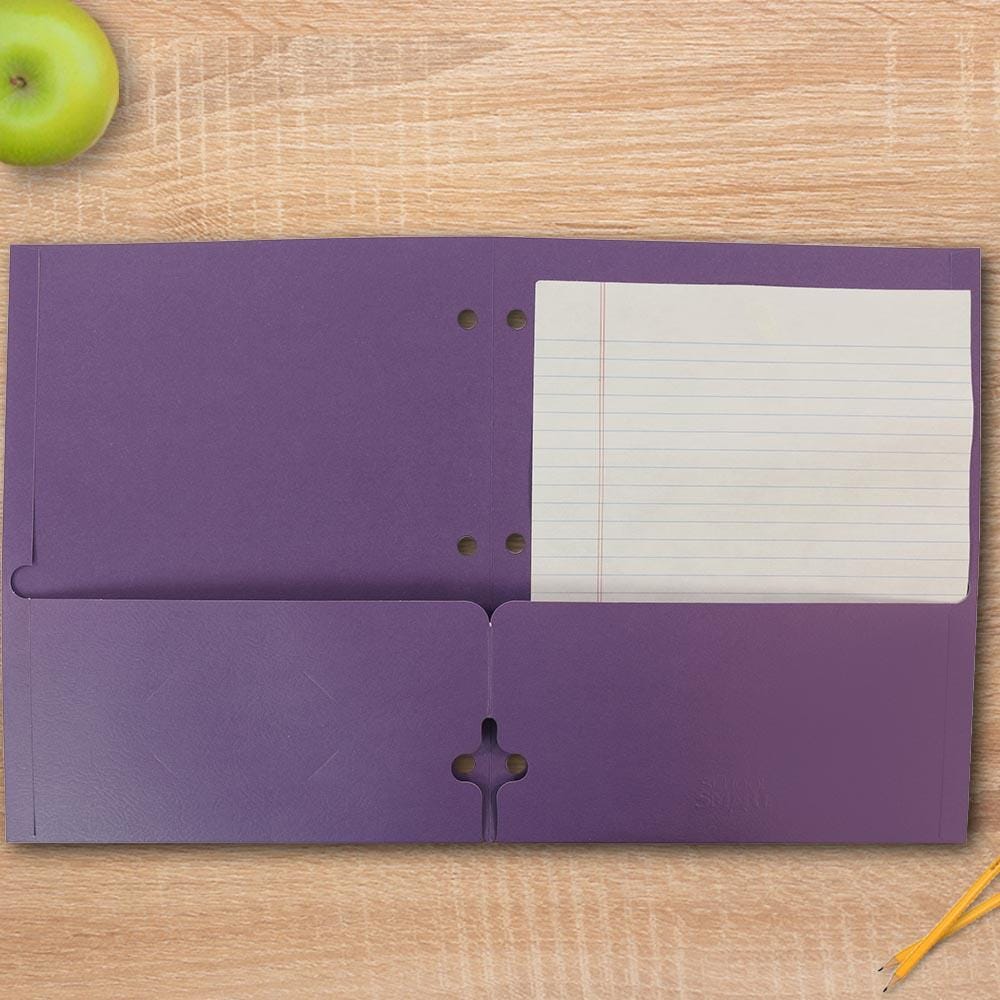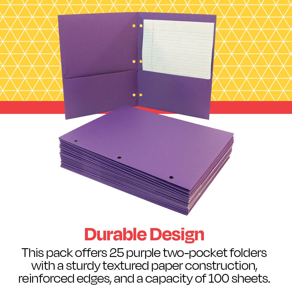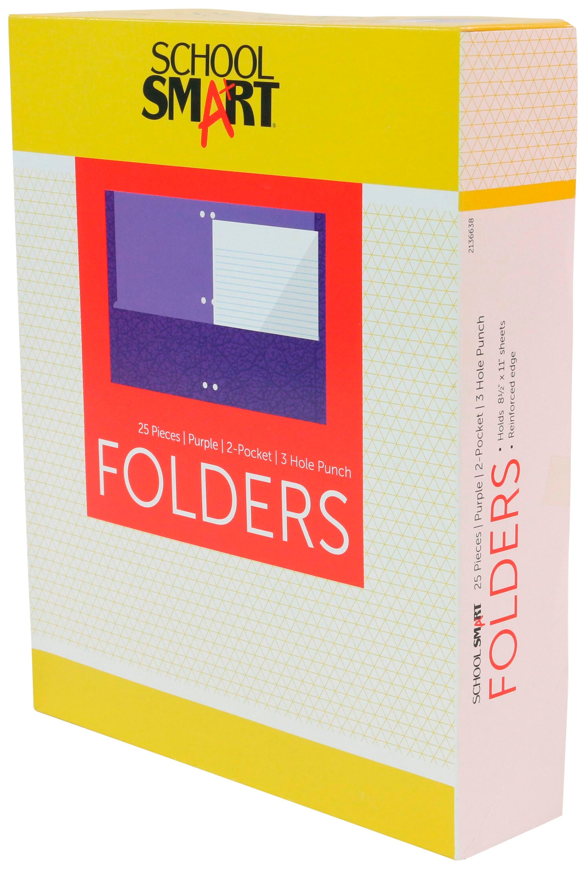 School Smart 2-Pocket Folders, Letter Size, 3 Hole Punched, Purple, Pack of 25