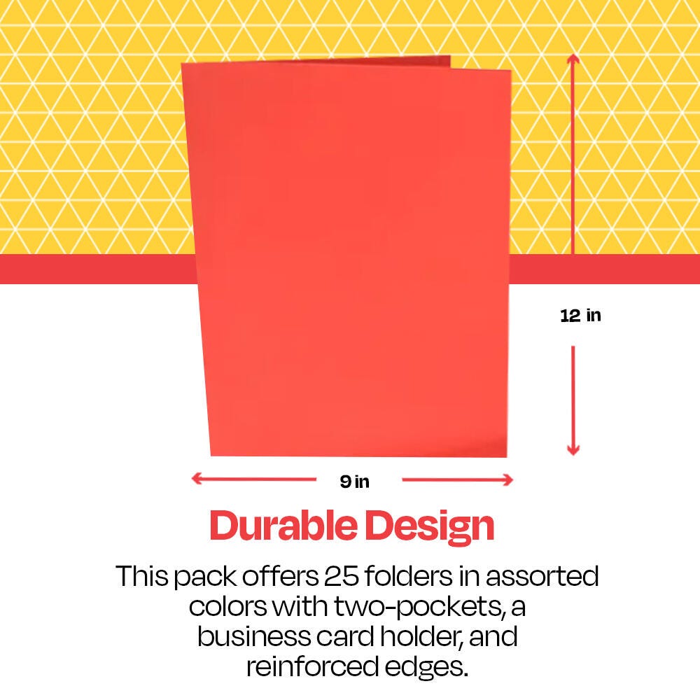 School Smart Extra-Large Folders with Pockets, 9 x 12 Inches, Assorted Colors, Pack of 25