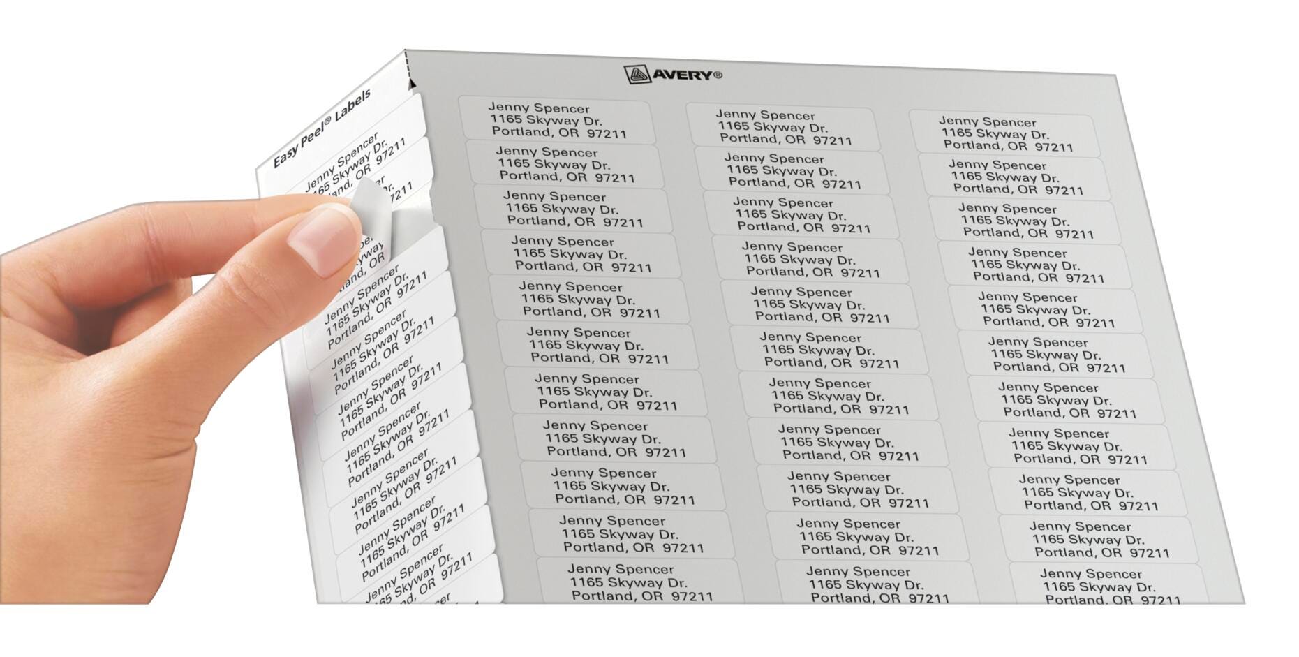 Easy Peel Address Labels are great when you want to create professional labels quickly and easily. They're perfect for high-volume mailing projects, labeling bottles, Ball and Mason jars, food containers, bath and beauty products, product branding, event decorations, party favors and crafts. Sure Feed technology is designed for a reliable feed through your printer, helping prevent misalignments and jams. The patented Easy Peel feature makes applying these labels a breeze. Simply bend the label sheet to expose the Pop-up Edge, peel off your label and fold the sheet back to flat. To easily customize your labels, use Avery's free online templates and designs.