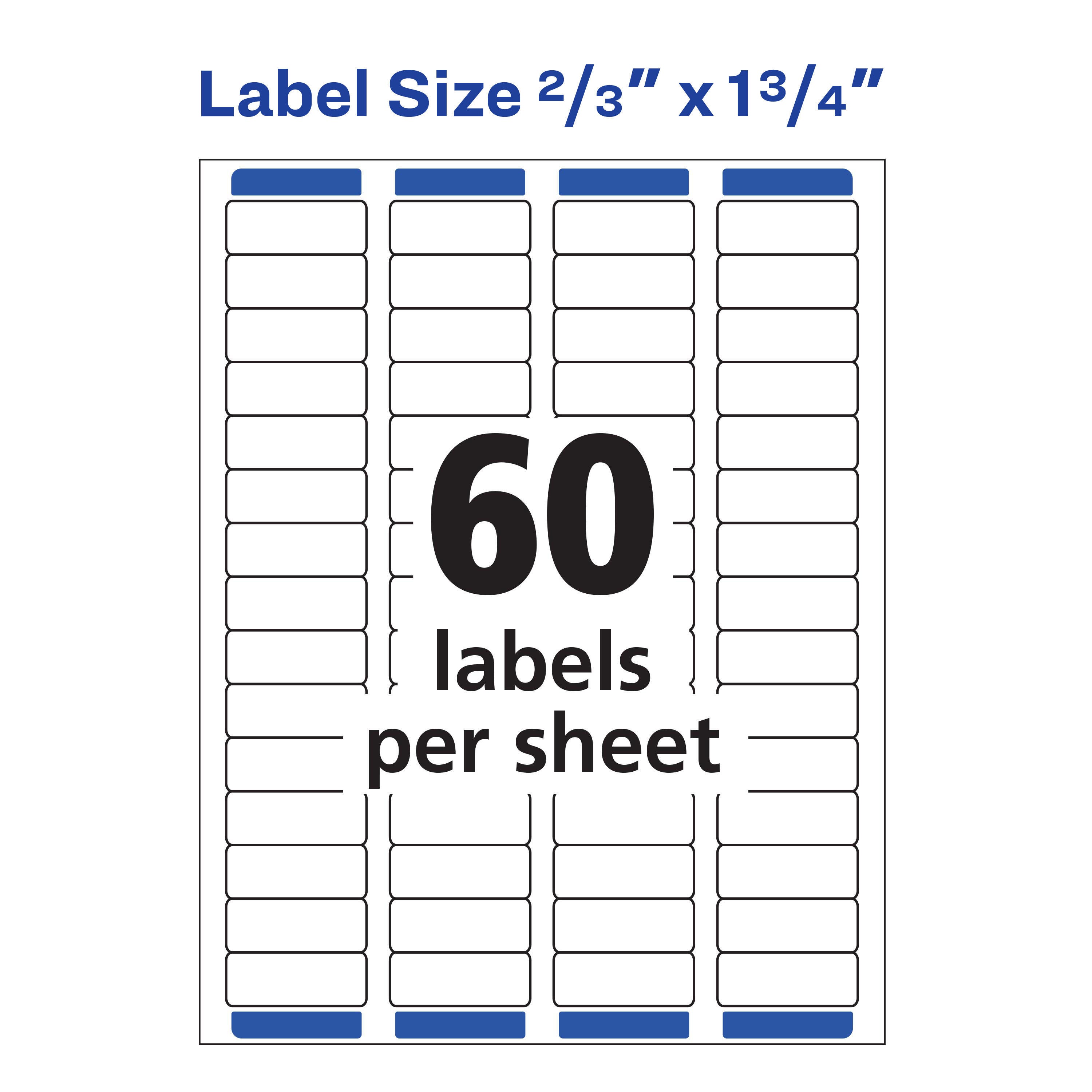 When you want to create professional labels quickly and easily, Avery Easy Peel Address Labels have you covered. Sure Feed technology is designed for a reliable feed through your printer, helping prevent misalignments and jams. The patented Easy Peel feature makes applying these labels a breeze. Simply bend the label sheet to expose the Pop-up Edge, peel off your label, and fold the sheet back to flat. To easily customize your labels, use Avery's free online templates and designs. Each label measures 2/3 x 1-3/4 inches.