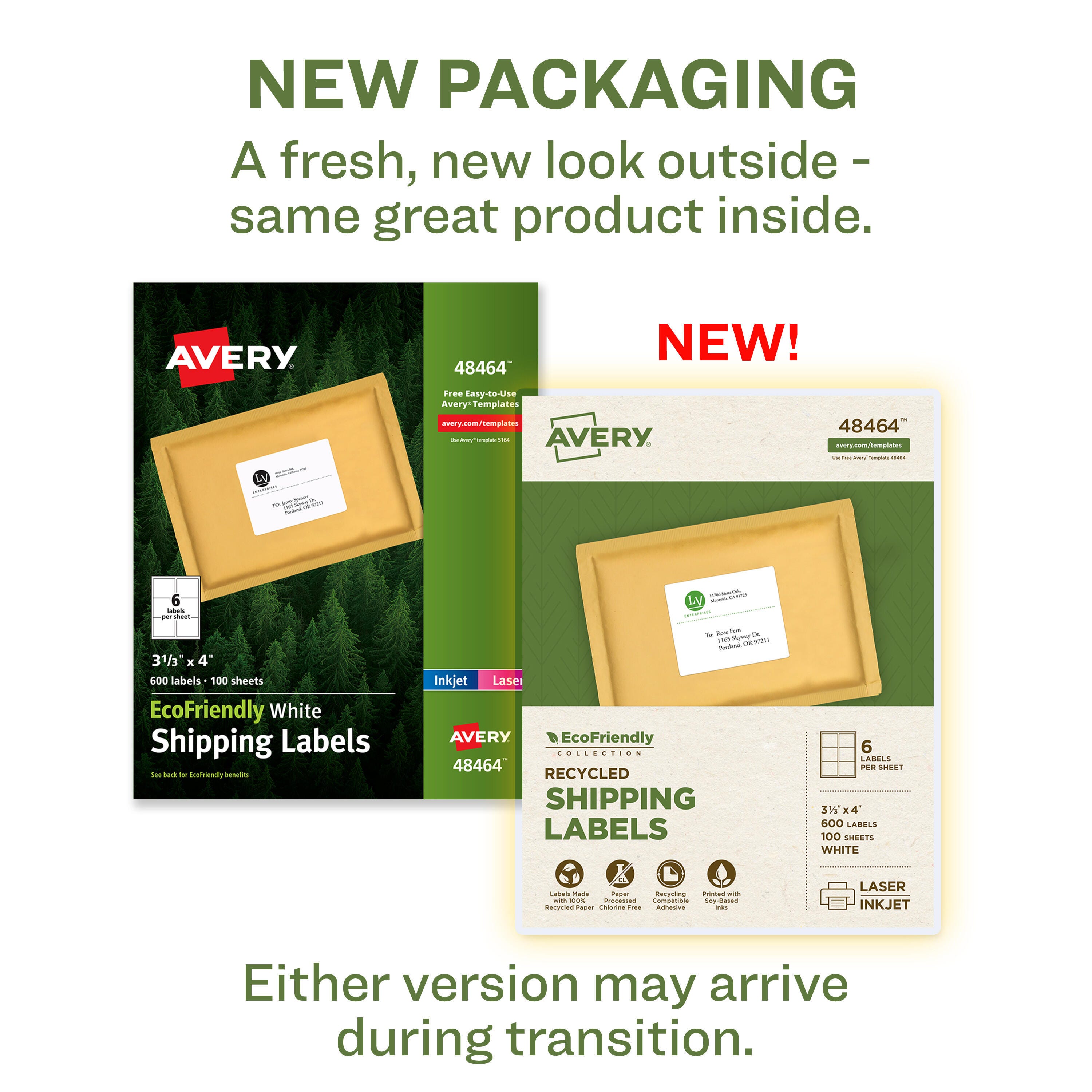 Avery EcoFriendly Shipping Labels, 3-1/3 x 4 Inches, Pack of 600