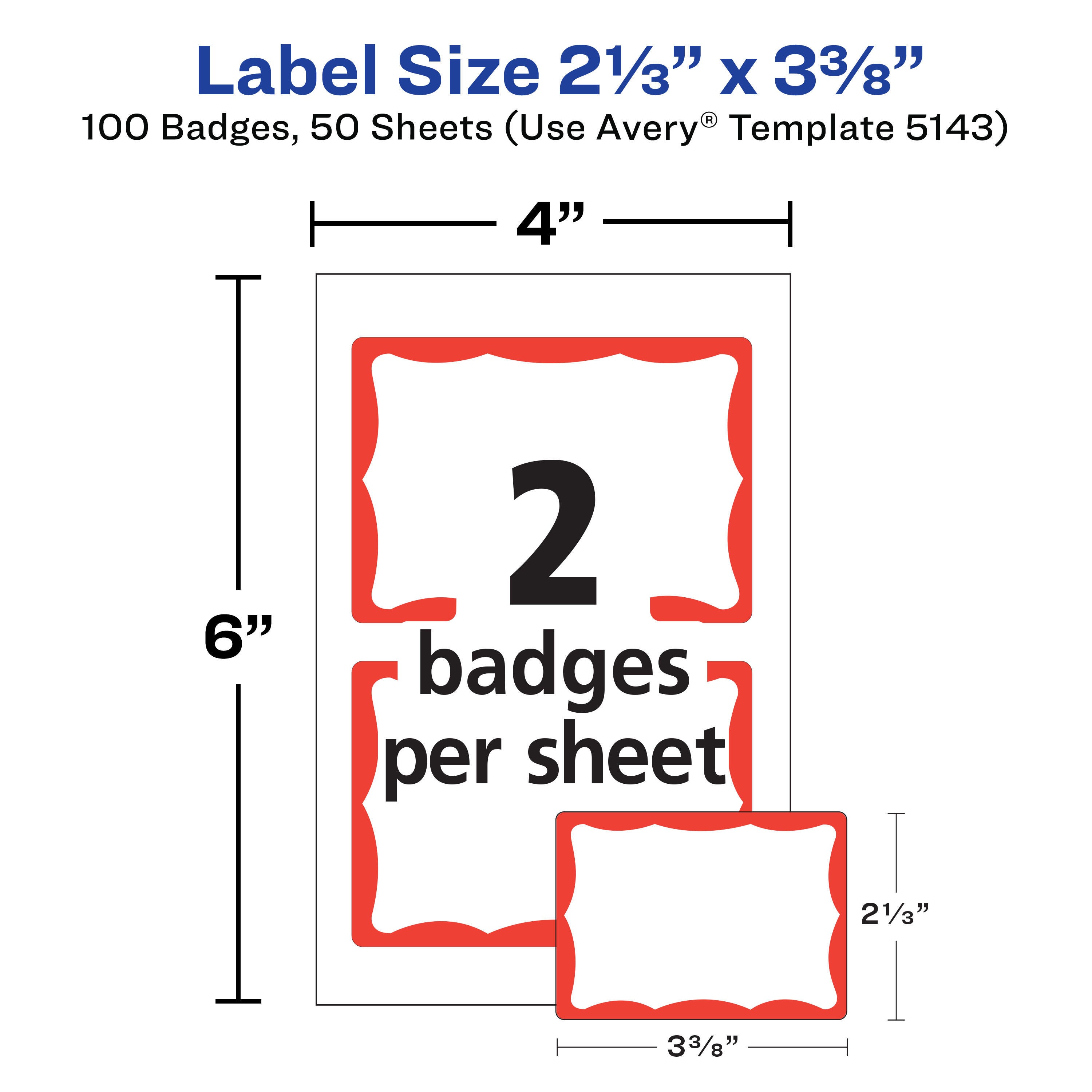 Avery Adhesive Name Badges, 2-1/3 x 3-3/8 Inches, Red Border, Pack of 100