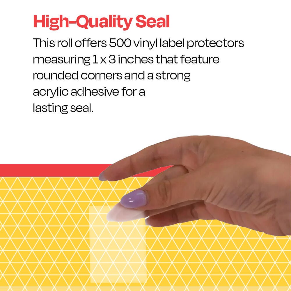 School Smart Vinyl Label Protectors, Round Corner Rectangle, 1 x 3 Inches, Clear, Pack of 500