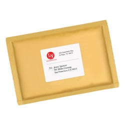 Create professional-looking packages quickly and easily with White Shipping Labels. These bright, white labels allow sharp, clear print and are perfect for shipping, mailing, organizing, crafts and other large labeling projects. They're easy to customize with your logo and information, using the free online templates and designs. Adhesive is permanent. The jam-free, smudge-free labels are made from Forest Stewardship Council (FSC) certified paper. Print labels with both laser and inkjet printers.Features