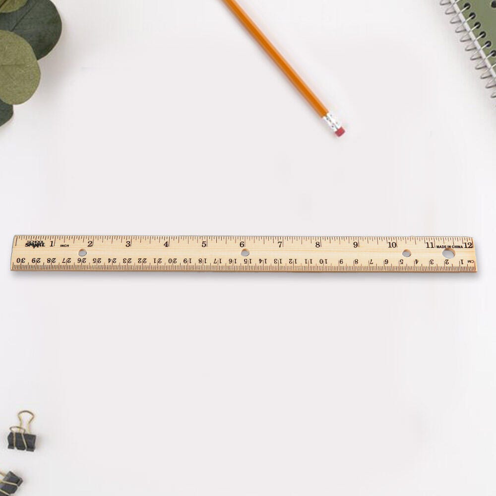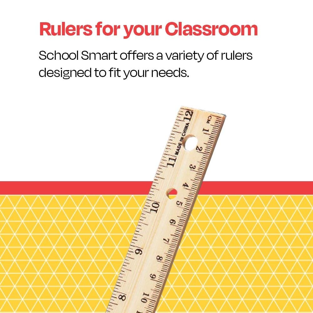 Description The School Smart wood ruler with double bevel features a pencil groove and is scaled in inches on one bevel and metric on the other. Three-hole punched to suit 3-ring binders, the 12-inch ruler is easy to carry and store. Made of real wood with a brass edge for durability, the hardwood ruler is perfect for students, teachers, and professionals.Features Essential tool for math, measuring, and drawing in the classroom, office, or home Features inches and metric measurements 3-hole punched for easy storage in binders High-quality wood and brass ensure long-lasting durability Brass edges ensure precise measuring, marking, and tearing