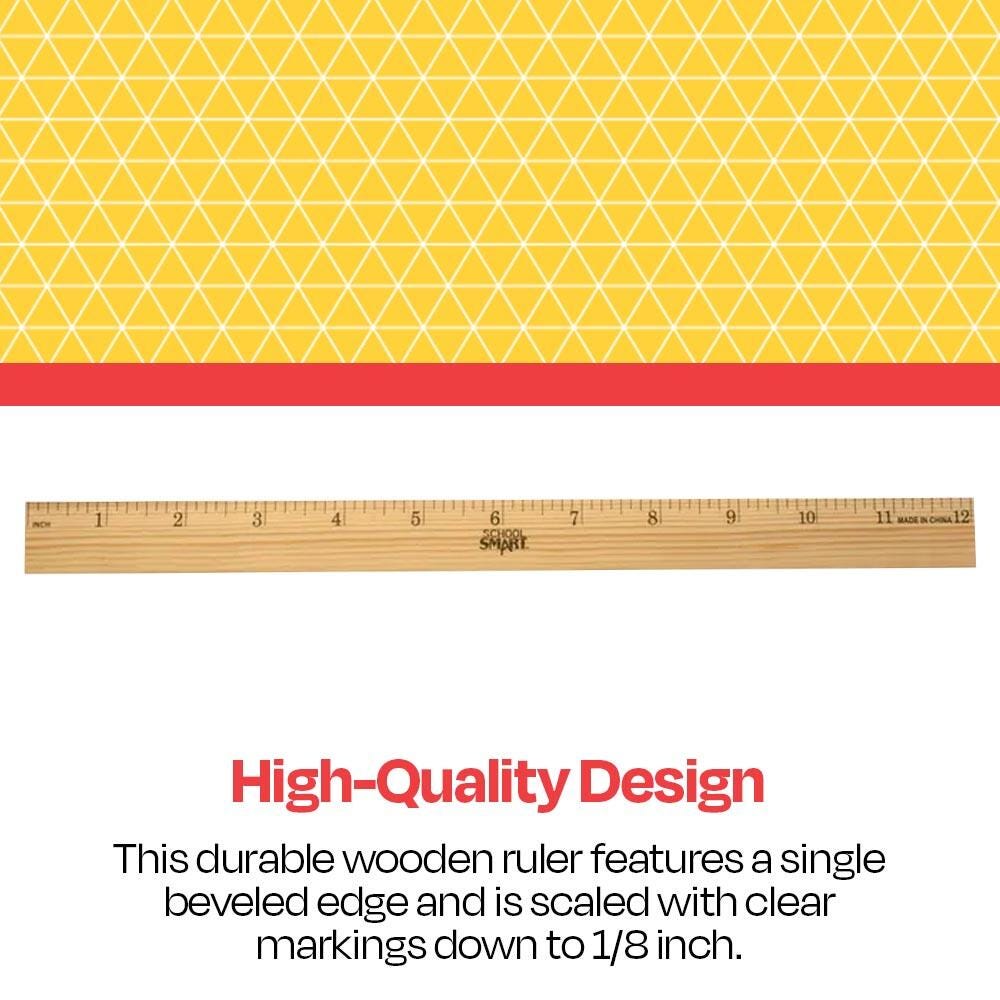 School Smart Wood Ruler, Single Beveled Plain Edge, 12 Inches, Scaled in 1/8 Inch Increments