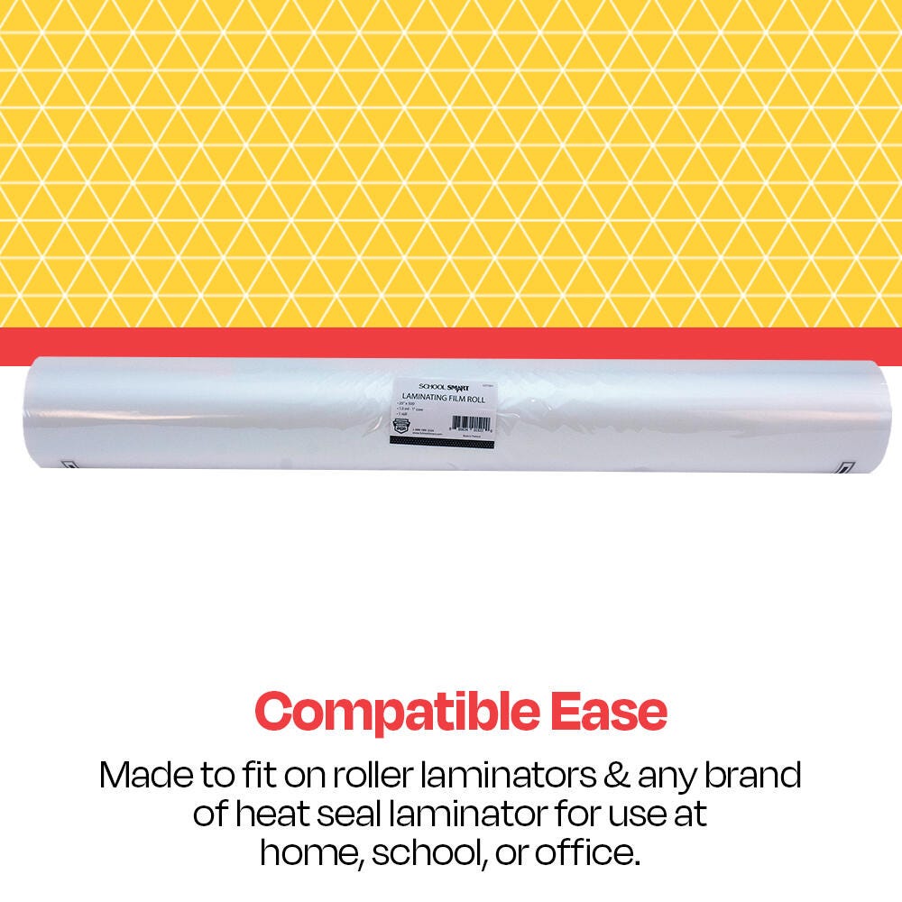 This high gloss laminating film from School Smart measures 25 inches x 500 feet and has a thickness of 1.5 mil. The roll comes on a 1-inch core and is specifically made for roller laminators. This laminate is conveniently designed to work with all brands of heat seal laminators. Sold as an each.