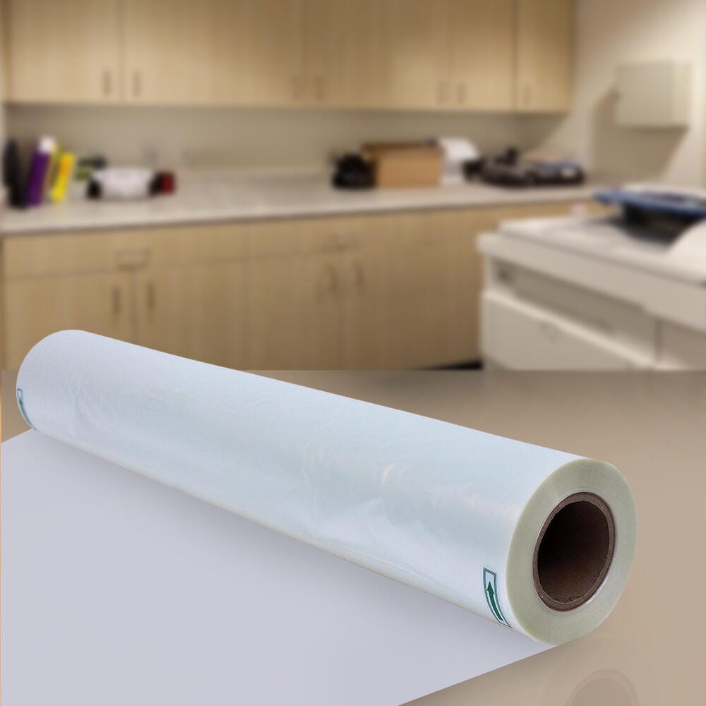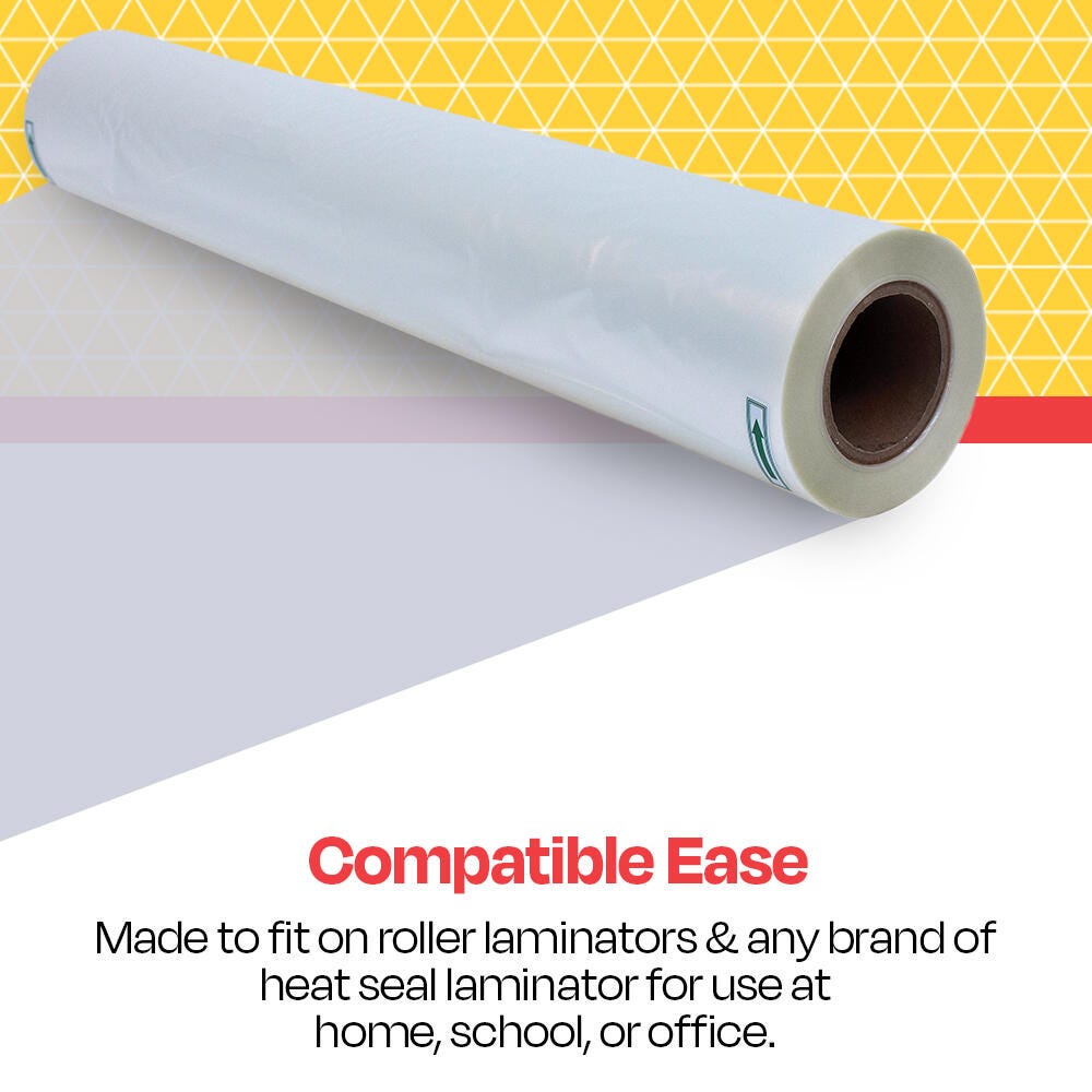 School Smart Laminating Film for roller laminators measures 27 inches x 500 feet and has a 1-inch core. The high gloss lamination is 1.5 mil thick. The easy wipe-clean surface can be used with dry-erase markers. This laminating film is designed to work with all brands of heat seal laminators.