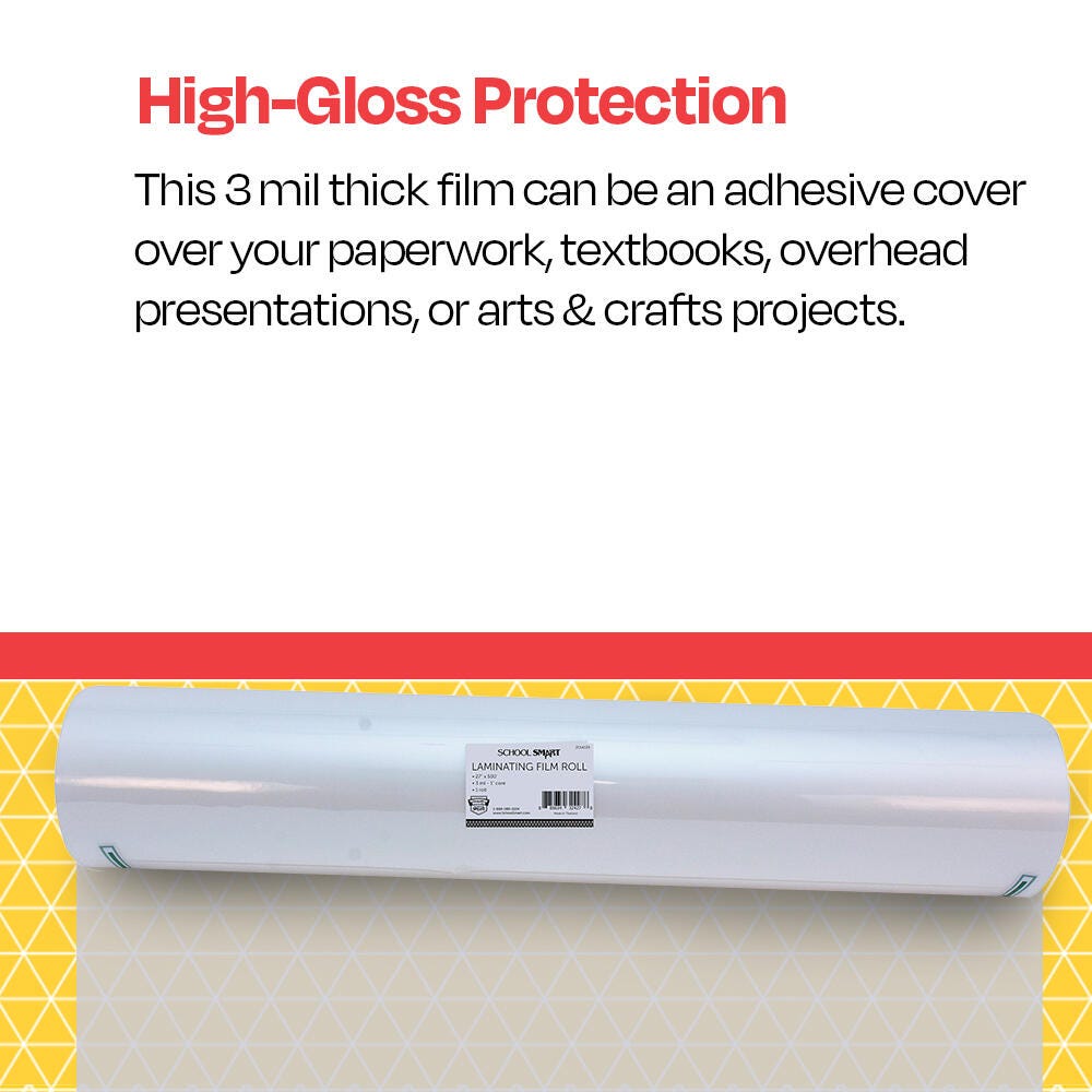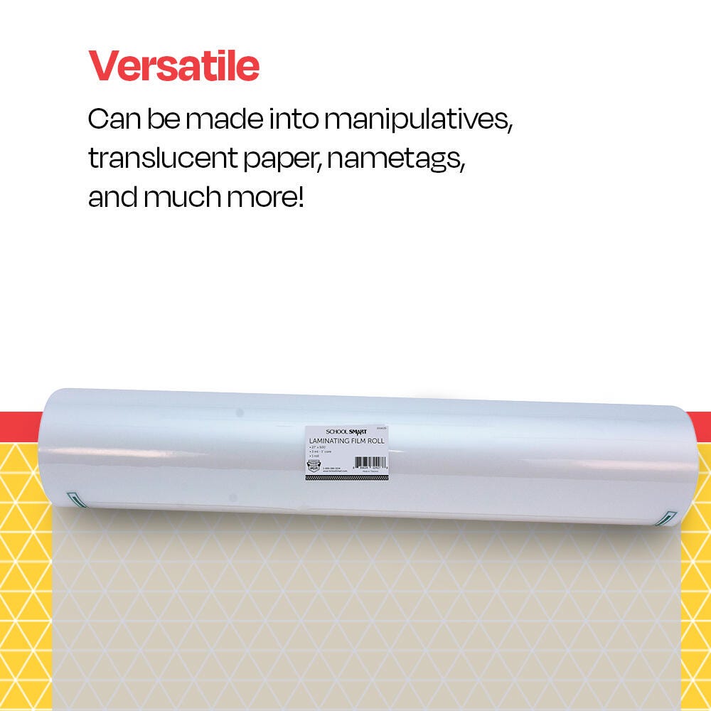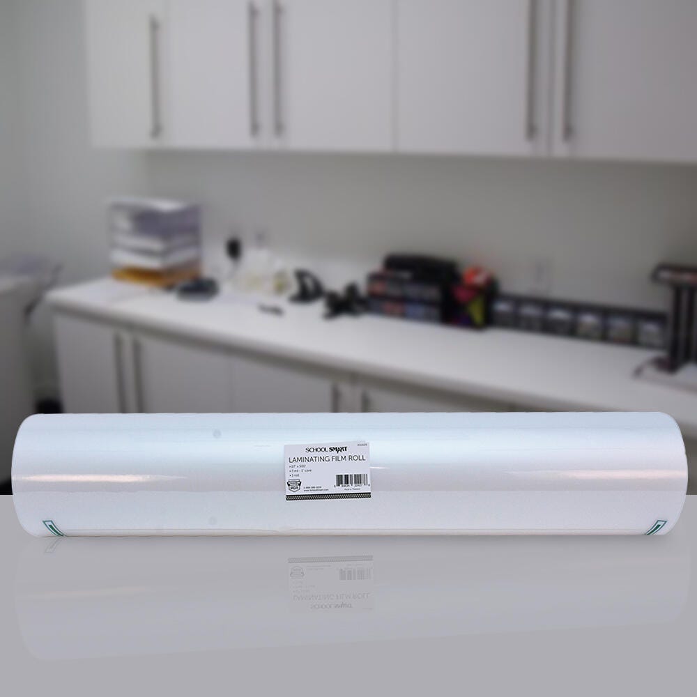 Protect and enhance your documents, supplies, signs, and beyond with School Smart Laminated Roll. Specifically designed for roller laminators, this 27 W x 500 L film roll comes on a 1-inch core and rolls seamlessly over your desired object (from textbooks and menus to yearly lesson plan documents, handouts, and more). Plus, you can cover your desired object, write on top of the laminated surface with dry-erase markers or blackboard pens, and then take it all off when you're ready for a fresh, clean slate! Roller film is to work with all brands of heat seal laminators.