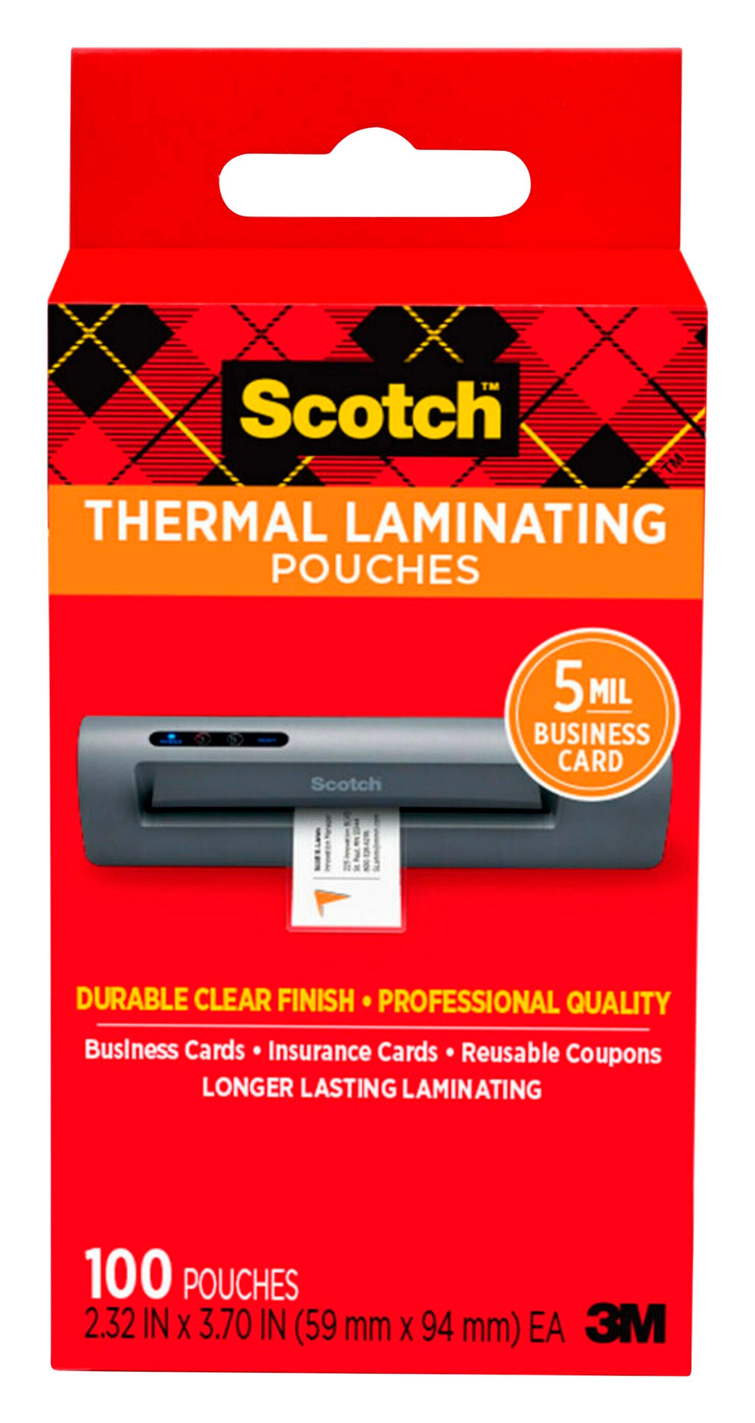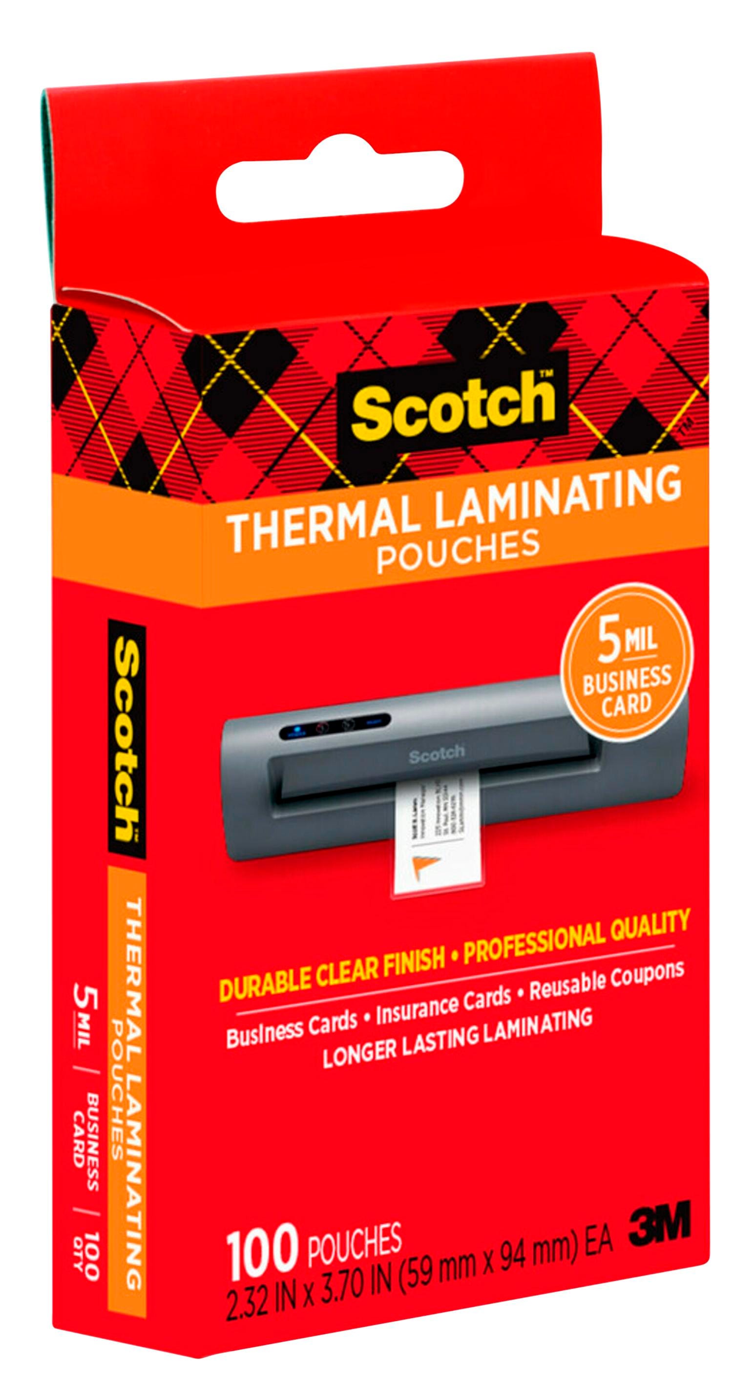 Scotch Thermal Laminating Pouch, Business Card Size, 2-1/4 x 3-3/4 Inches, 5 mil Thick, Pack of 100