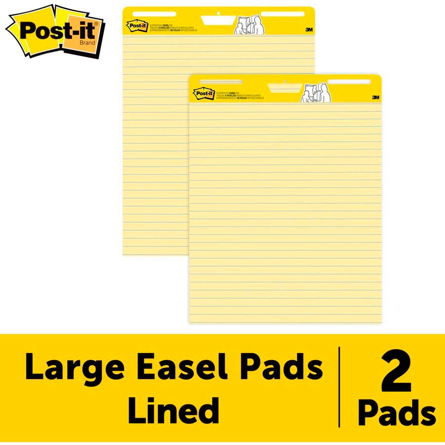 Post-It Self-Stick Easel Pads, 25 x 30 Inches, Ruled, Yellow, 30 Sheets, Pack of 2