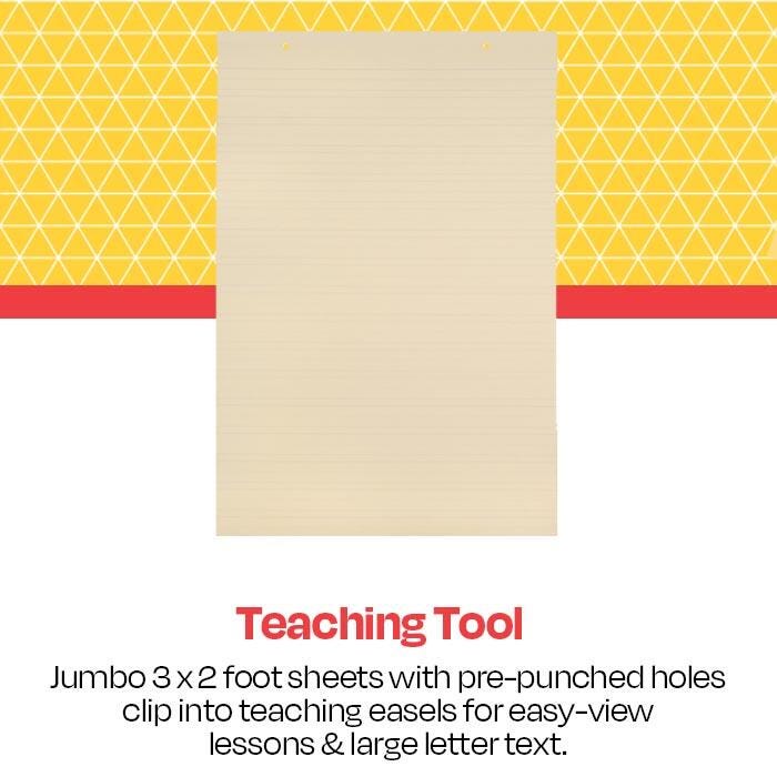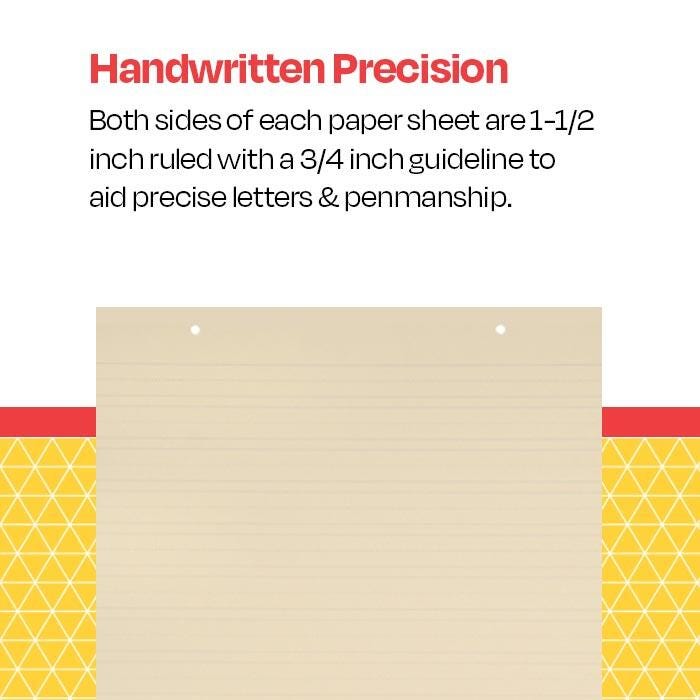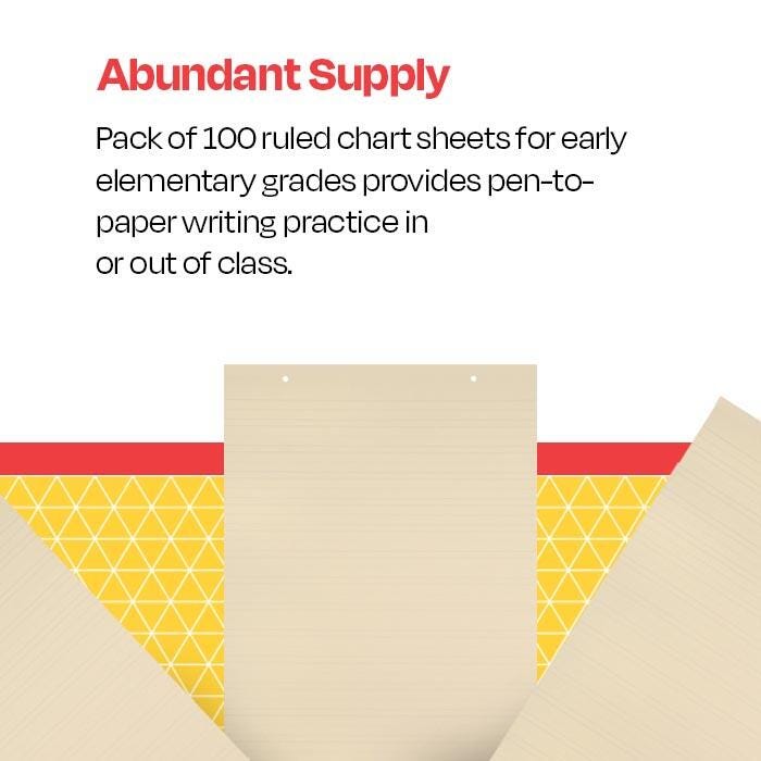 Features Writing paper is ruled on both sides for double the workspace to practice handwriting and sentence structures, compute equations, and more Chart paper features two neat holes punched at the top making it easy to hang just where you need it Buff color of manila chart paper and space between ruled lines makes content extra easy to read for young elementary students Thick and jumbo sized chart paper is great resource for making anchor charts and lesson plans on spelling, alphabet, and grammar lessons Includes: 100 Double-Sided Sheets of Writing Paper