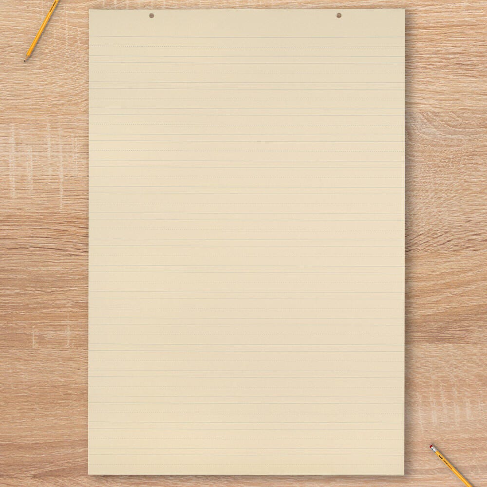 Description Take lesson plans and handwriting practice to the next level with the School Smart Manila Tag Chart Paper. The sturdy buff-colored design has a 15 lb. basis weight that prevents common bleed-throughs from markers or pens, and features ruled lines (short way) on both sides for double the writing surface. Measurements include a 1-1/2 inch ruling and a 3/4 inch guideline. Two small punched holes at the top make it easy to hang on teacher easels or bulletin boards. The full manila chart includes 100 double-sided ruled sheets with each sheet measuring 36 x 24 inches. Recommended for Grades K to 3.